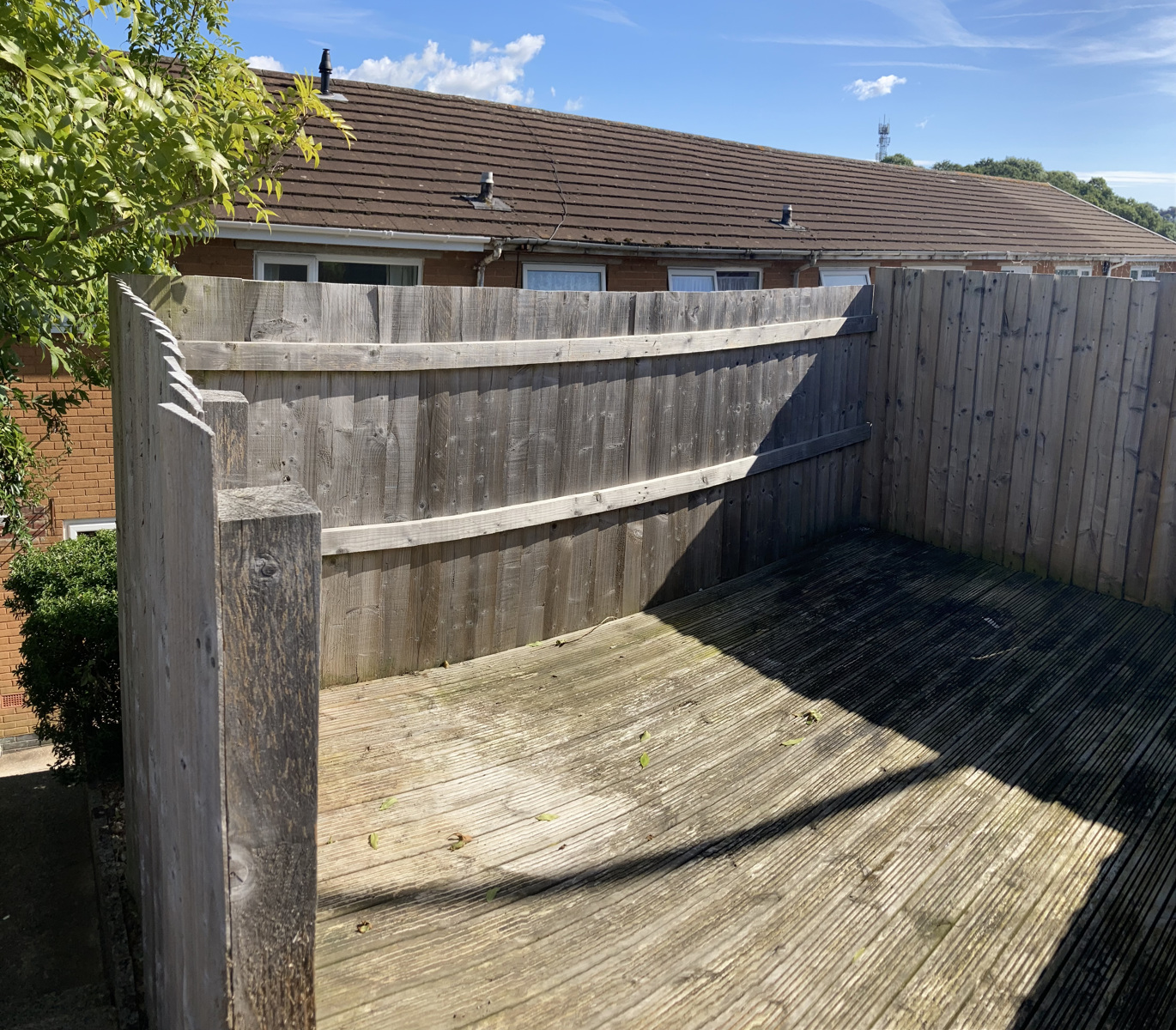 Steps lead up to a further terraced area laid to artificial grass and gravel. Rotary washing line. Further steps lead up to another useful enclosed decked area ideal for relaxing on sunny days.