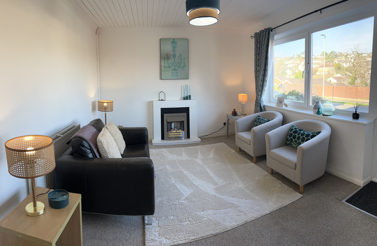 uPVC Door leads into a light and bright room with a large uPVC picture window enjoying a front aspect. A contemporary electric fireplace suite provides a focal point for this good-sized living room. Light fitting. Telephone point. Aerial point. Radiator.