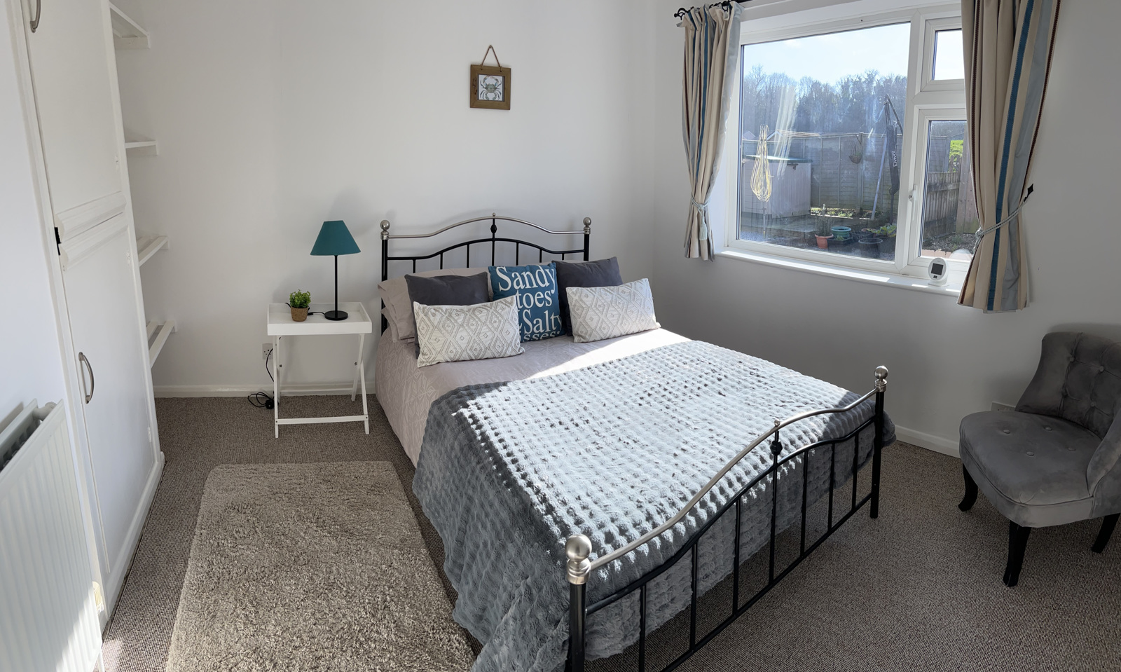 Second double room. Airing cupboard housing the Ideal Combi Boiler which provides the heating and hot water. Side recess with open slatted shelving. Light fitting. uPVC double glazed window. Radiator.