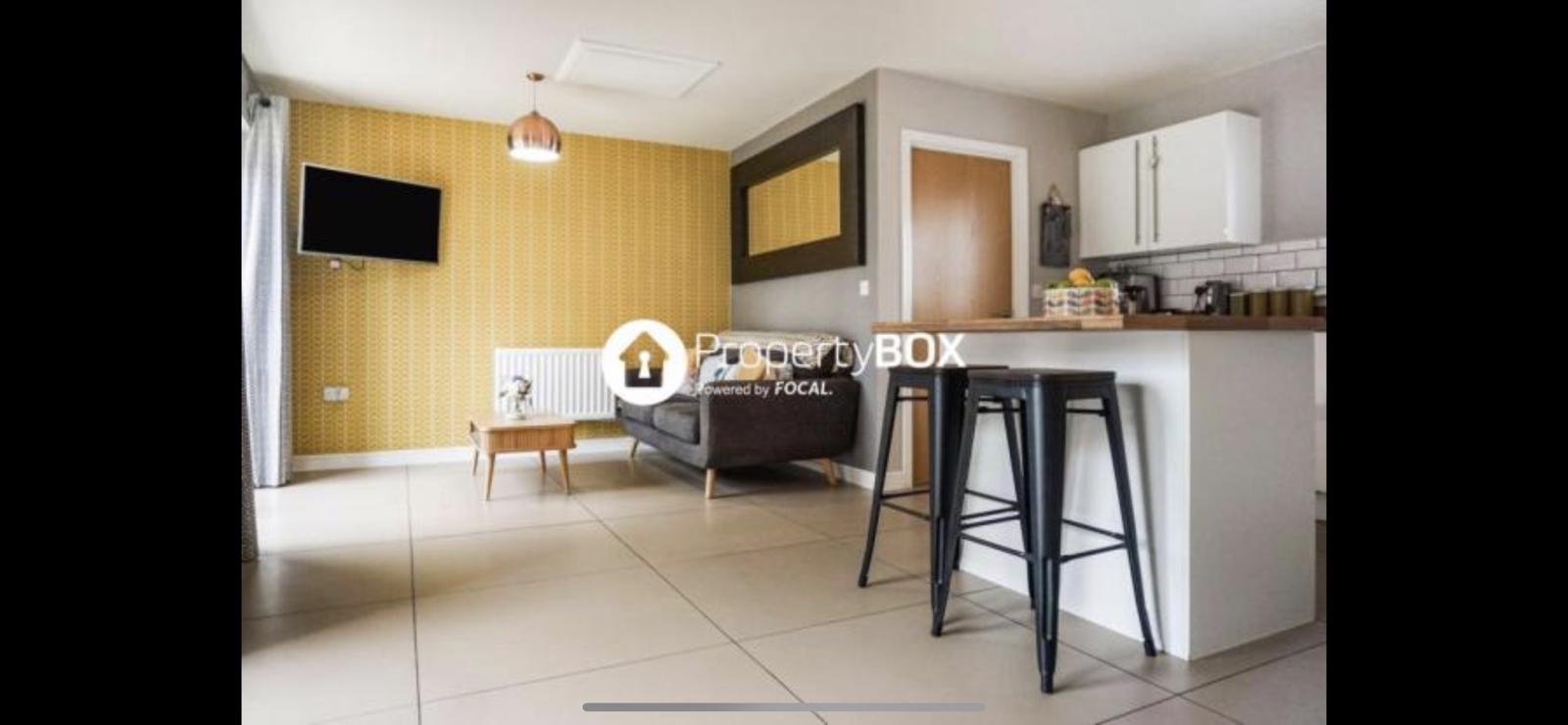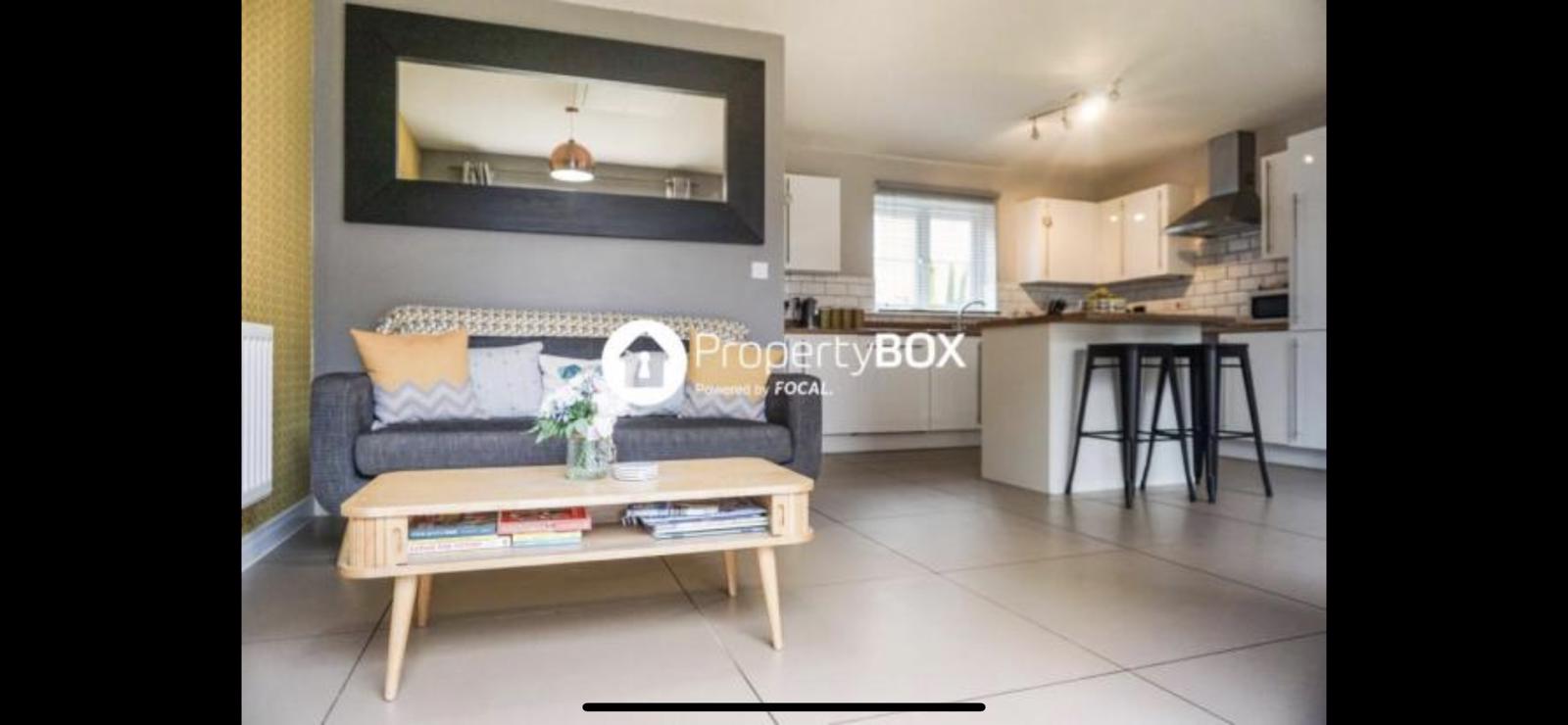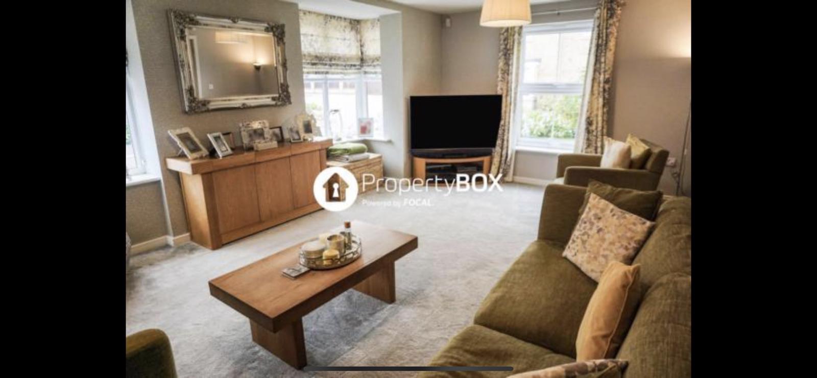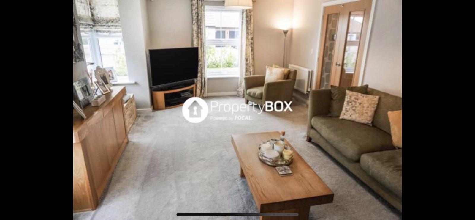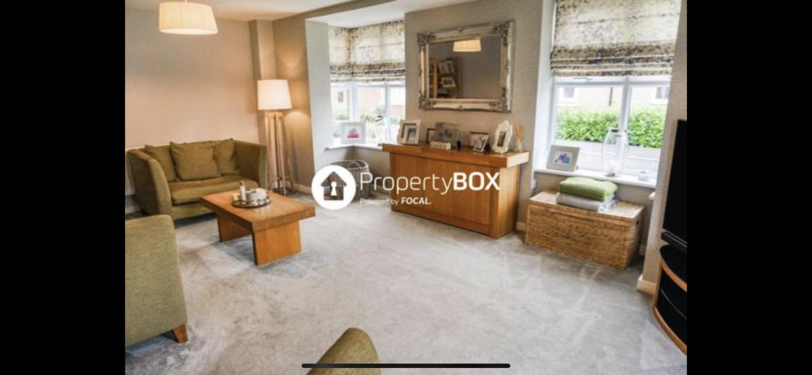 2 large bay windows and a side window. Currently have a 77” Tv between the bay windows perpendicular to the sofa for great viewing experience at the same time allows for space of a 1.8m x 2m playpen. 5.6m x 4m