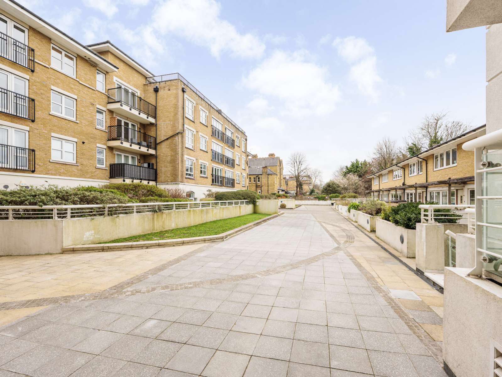 Located on the first floor, the flat includes a balcony with garden views, creating a peaceful sanctuary reminiscent of a more remote location, yet easily accessible.