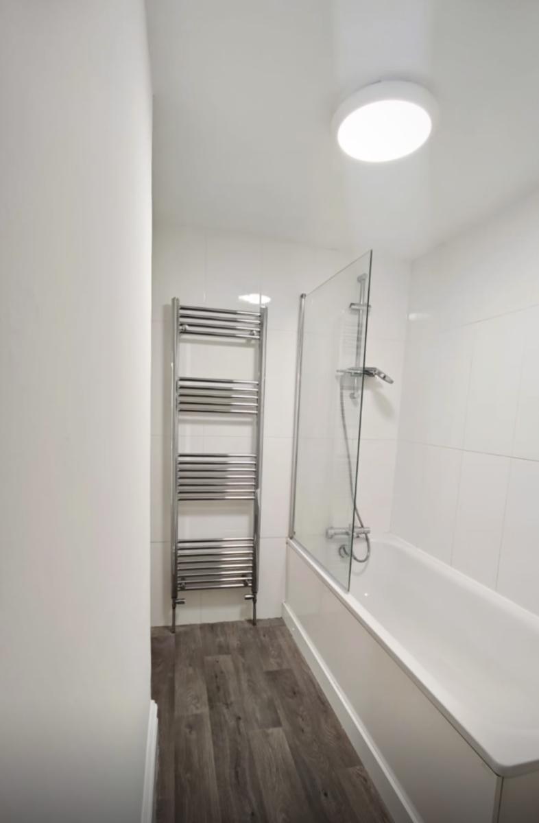 • Newly fitted modern bathroom with bath, shower, toilet, and sink