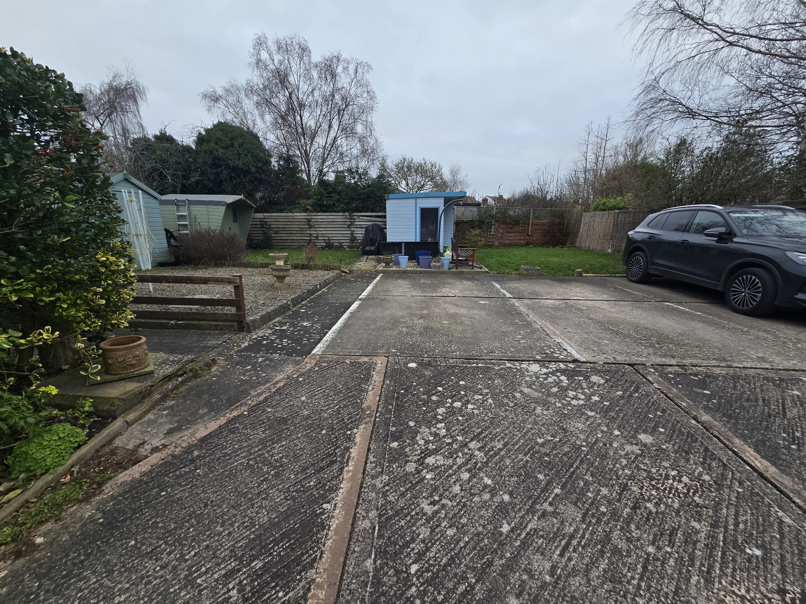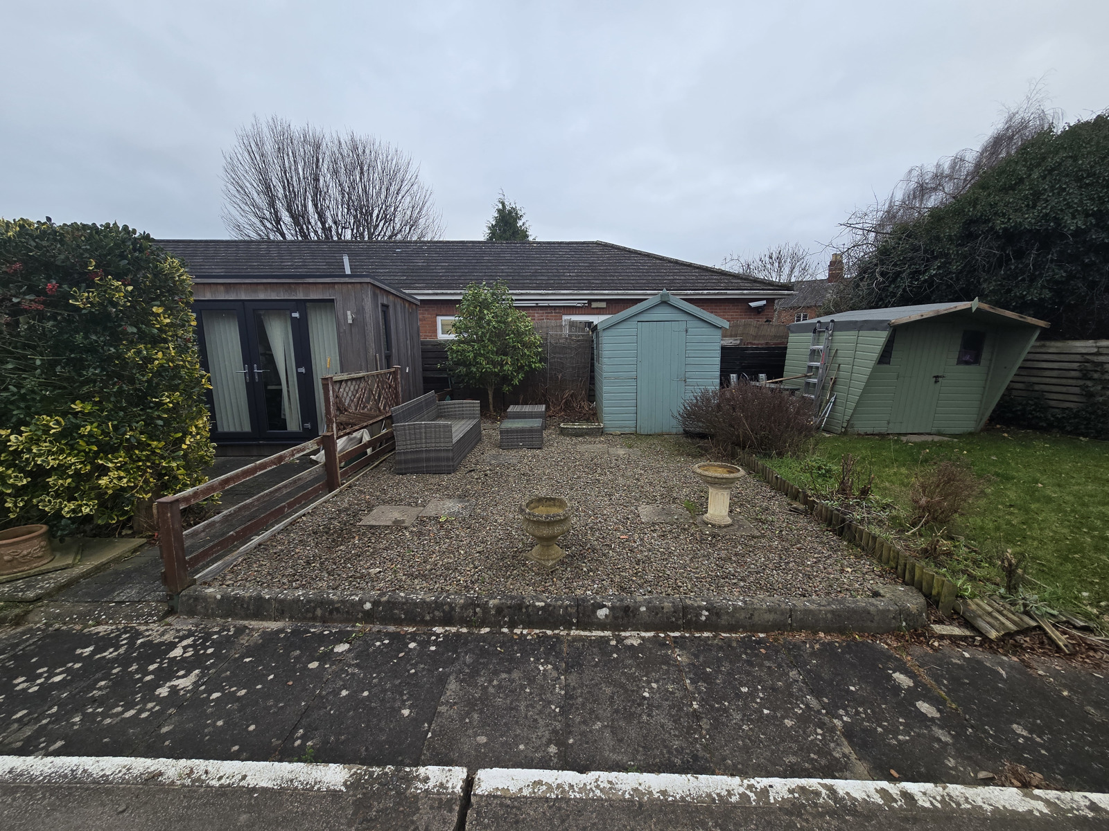 Outdoor Space: Includes a front lawn and a private, gravelled rear garden area with a wooden shed.