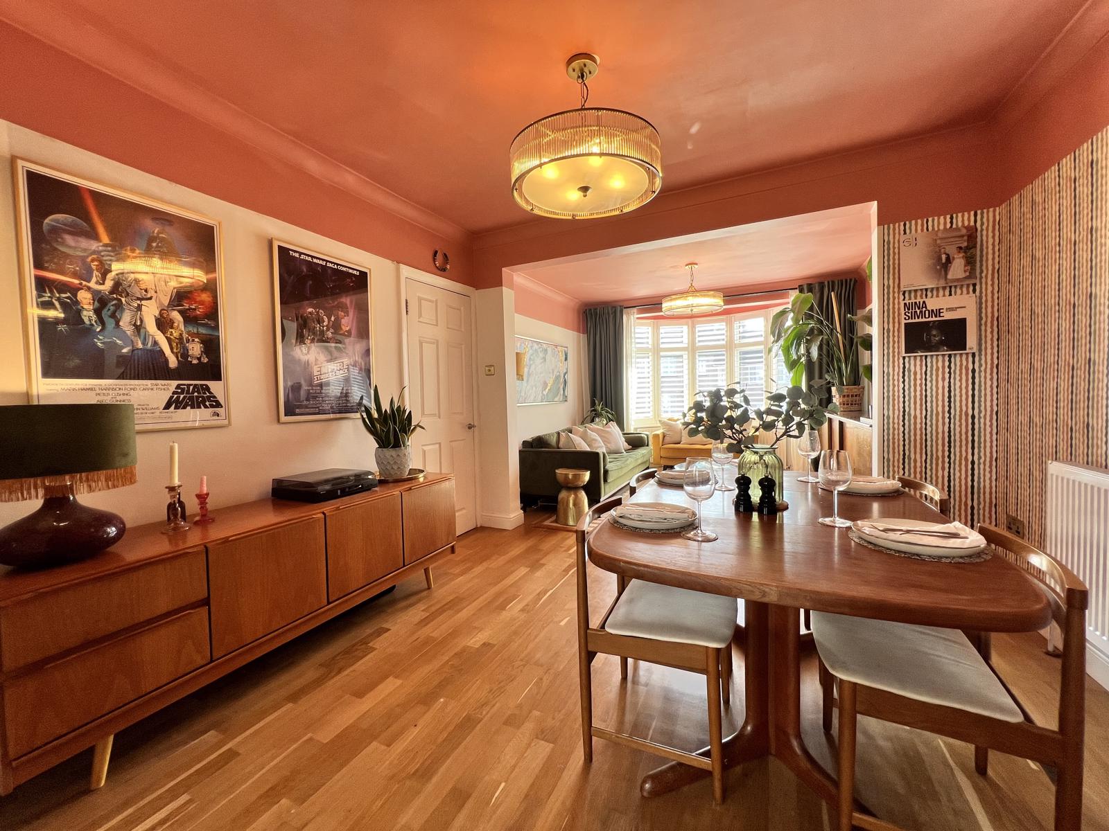 Nestled on a quiet sought-after road, with panoramic views of London, this stylishly extended three-bedroom 1930s house is available for sale.