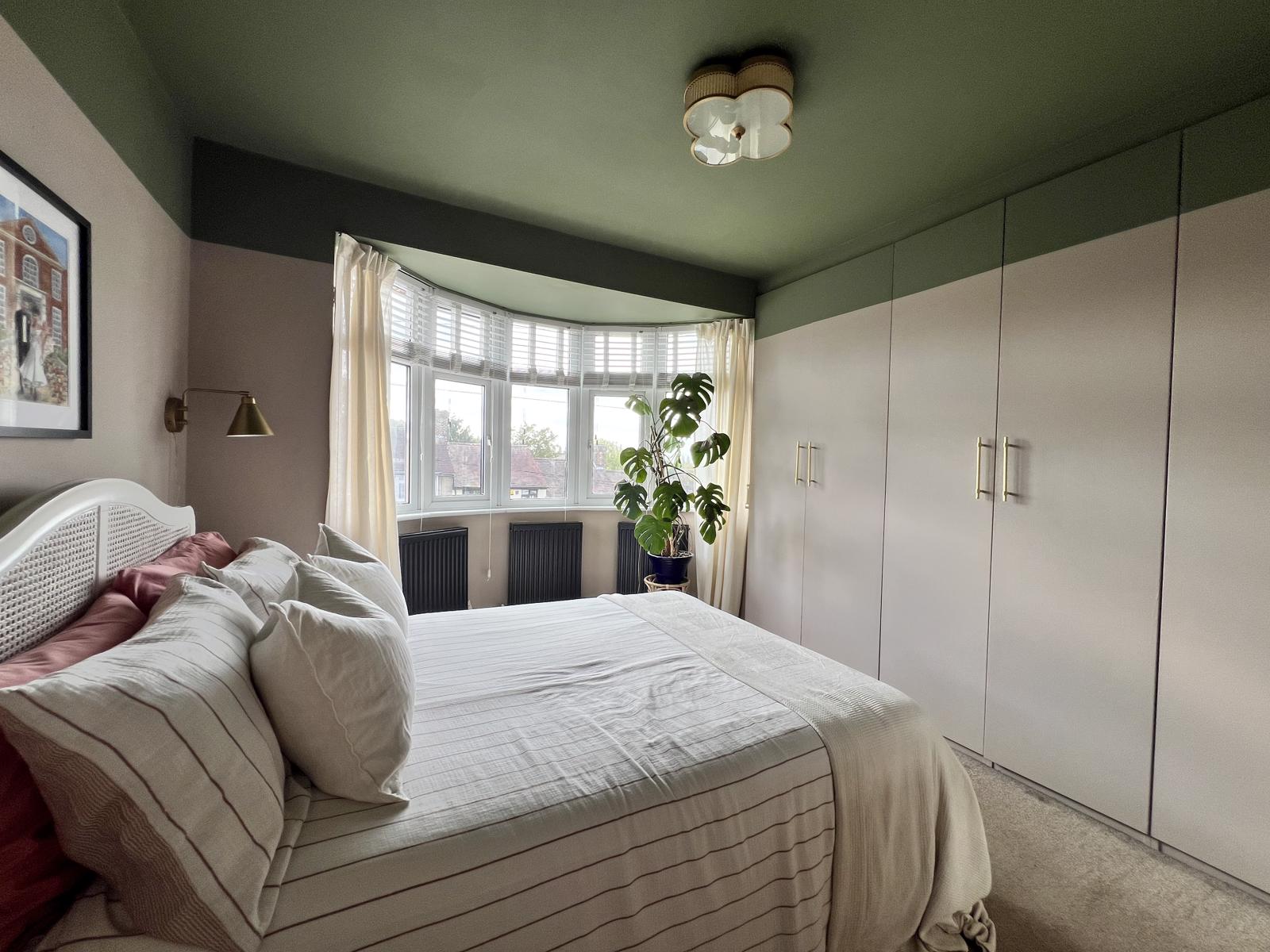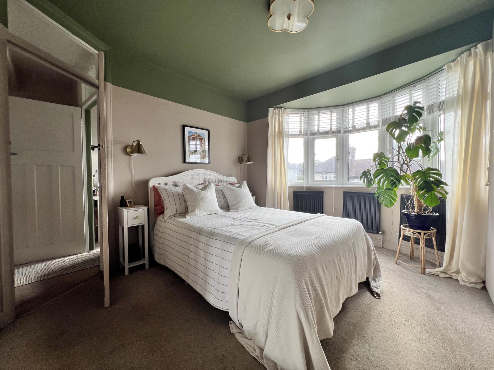 Bedroom 2: A double bedroom with a large double-glazed bay window, central heating, and fitted wardrobes.