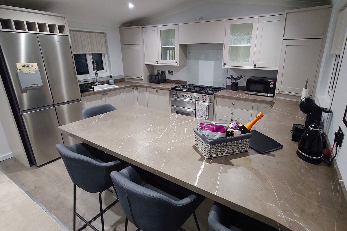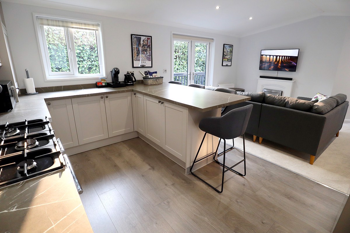 This modern luxury Holiday Lodge, manufactured in 2023, is finished and furnished to a high standard. Grey and neutral tones; abundant natural light in all rooms. The holiday park is opened 12 months a year and does not have closed seasons. No chain, no Council Tax, long lease (30 years).