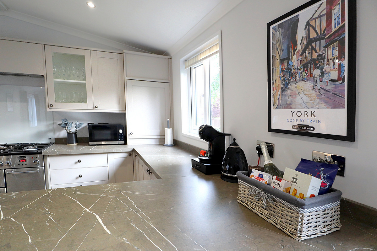 Modern and luxury Holiday Lodge, manufactured in 2023, finished and furnished to a high standard. Excellent Holiday Let opportunity. Located in a quiet holiday park, private parking, direct buses to York city centre. Currently used as a luxury holiday let. Can be sold for private occupancy, or as a holiday let. The holiday park is opened 12 months a year.