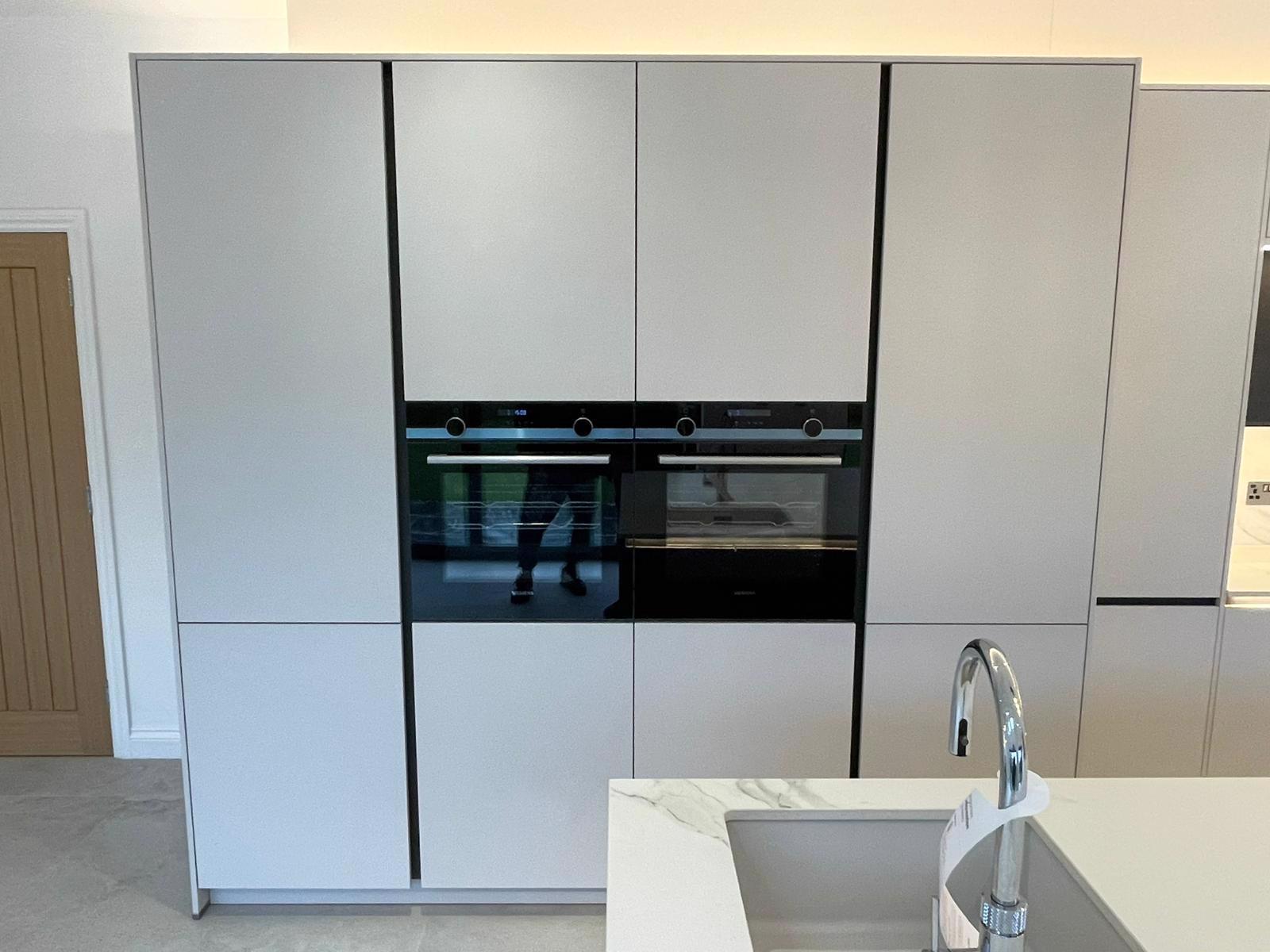 Side Units with 2 Integrated Ovens, Full Height Fridge + Freezer & Dishwasher.