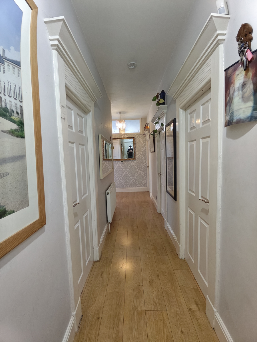 The hallway features grand Georgian door surrounds leading to all rooms.