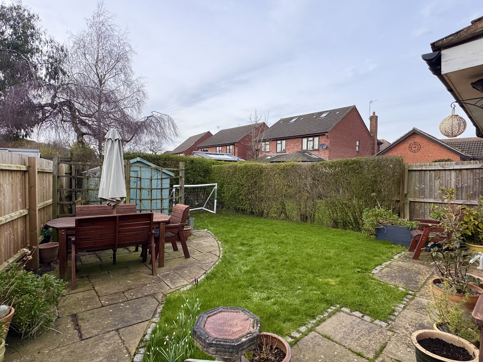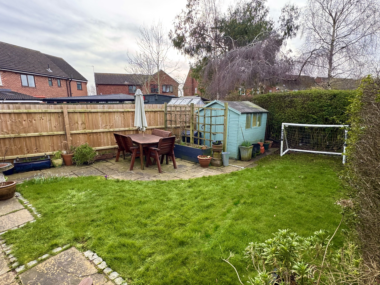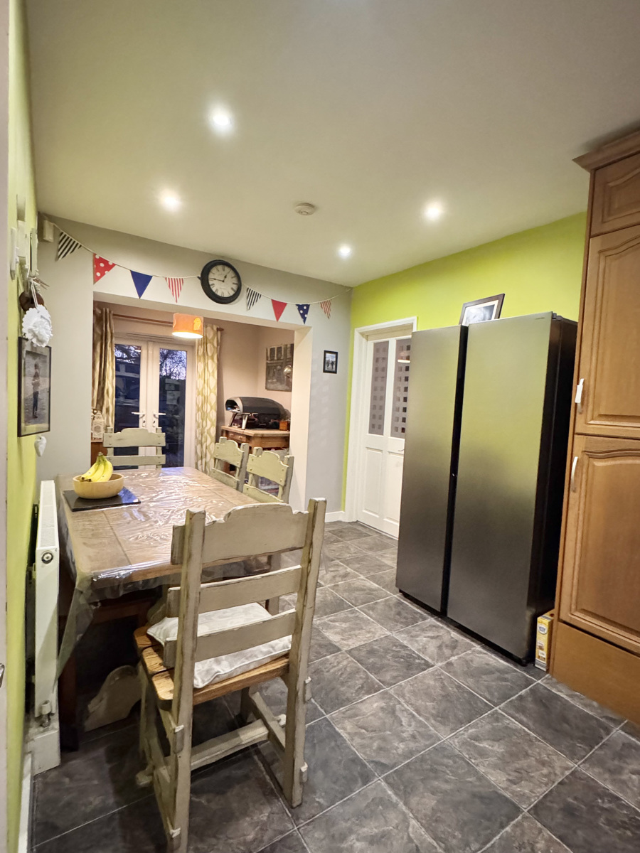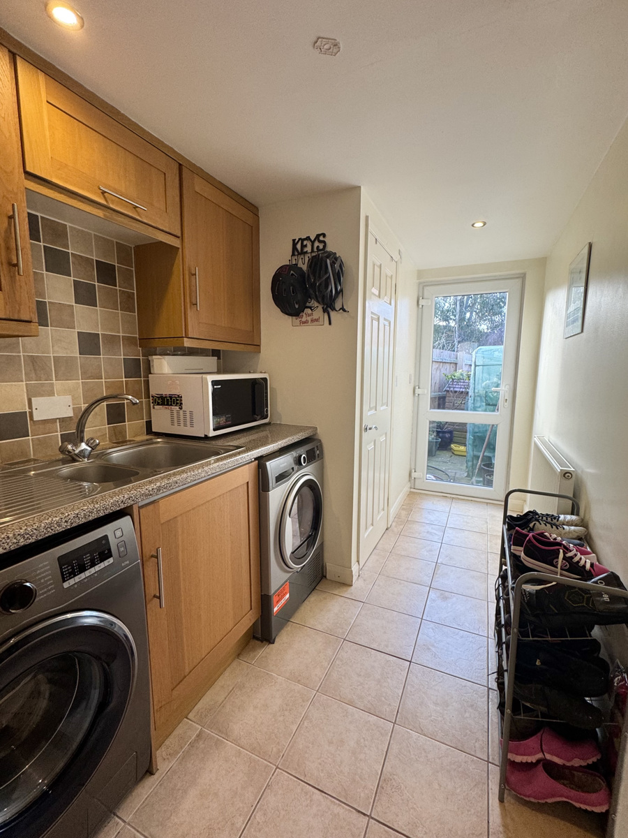 Upon entering the house a hallway, with under stair storage, leads you to an impressive lounge living room with a focal fireplace and French doors to the rear garden. Following through to the next room is the kitchen diner that comprises of a space for an integrated fridge freezer, dishwasher, electric oven with an induction hob, ample unit storage space, and further dining area. As well as this, on the ground floor the property boasts a spacious utility room that offers two spaces for appliances, a sink unit and a separate WC. The utility room provides access to the front and back of the property that leads to a generously sized, low maintenance garden that comprises of a large shed, patio and lawn.