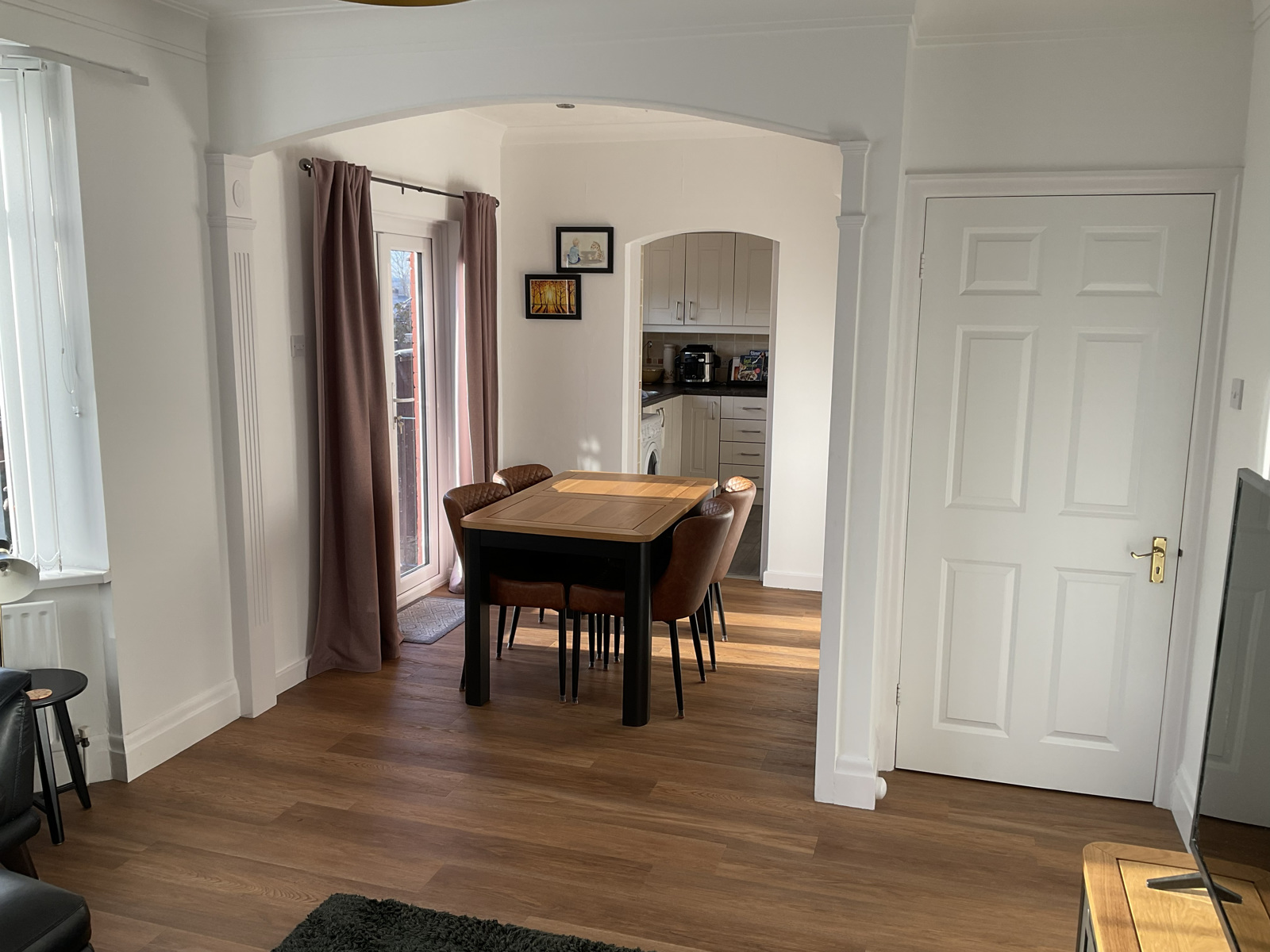 A room with a wonderful sunny aspect with patio doors leading to the rear garden. The living room area incorporates a fireplace with electric fire.