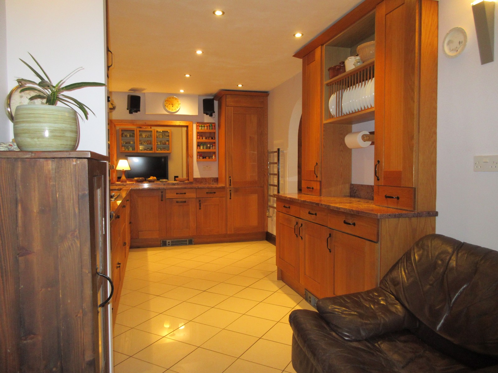 Between the kitchen and the hall is a study area. The utility room leads to a toilet, as well as a shower room with wet-room shower. Beyond the utility room is a room currently used as an office, but which is also suitable for use as a bedroom.