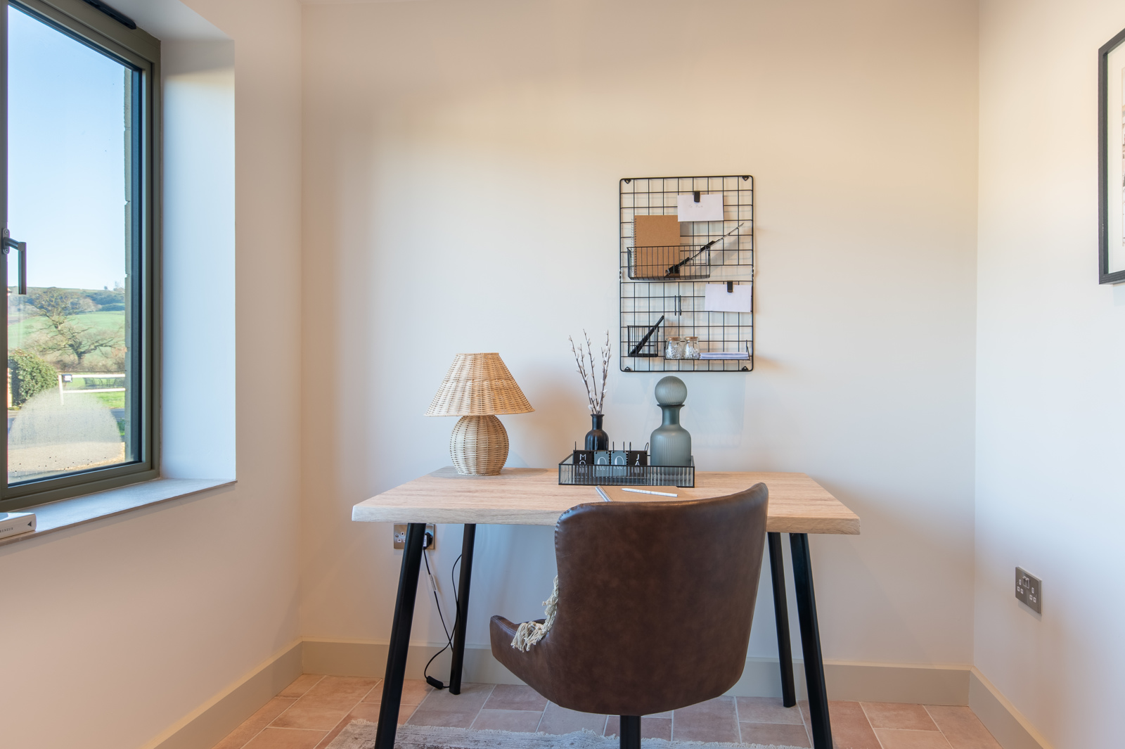 Double aspect room with windows to front and side. Views over farmland to side.