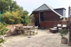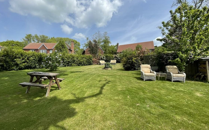 The house enjoys a large patio area directly accessible from the dining or sitting room via folding sliding doors.