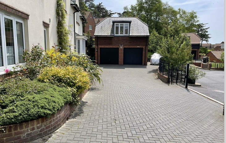 There are automatic wrought iron gates leading onto a brick paved drive to front. A double garage stands to one side which has accommodation above currently utilised as an annexe for airbnb guests. The gardens extend around the house with a mixture of mature trees, shrubs, borders and flowerbeds.