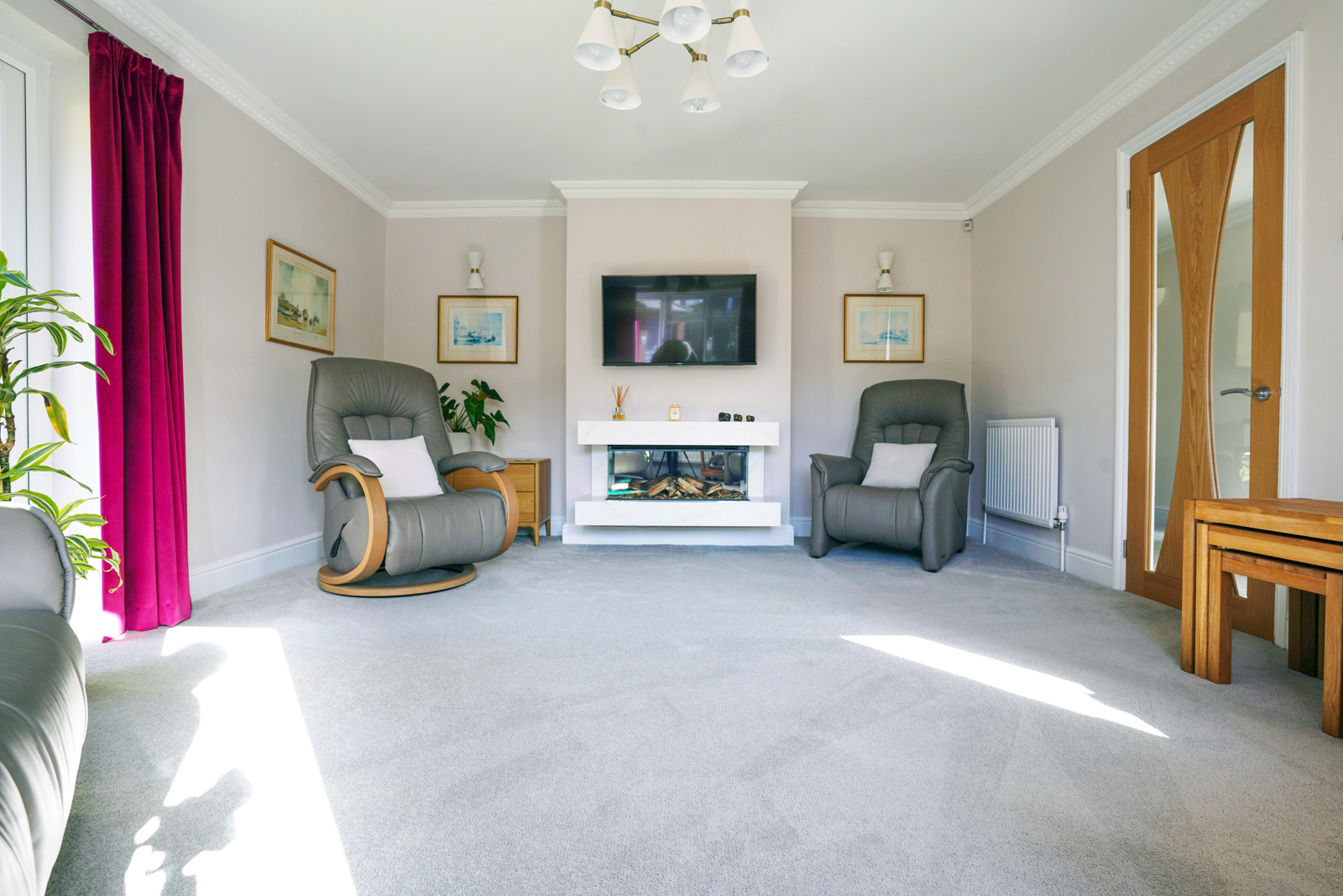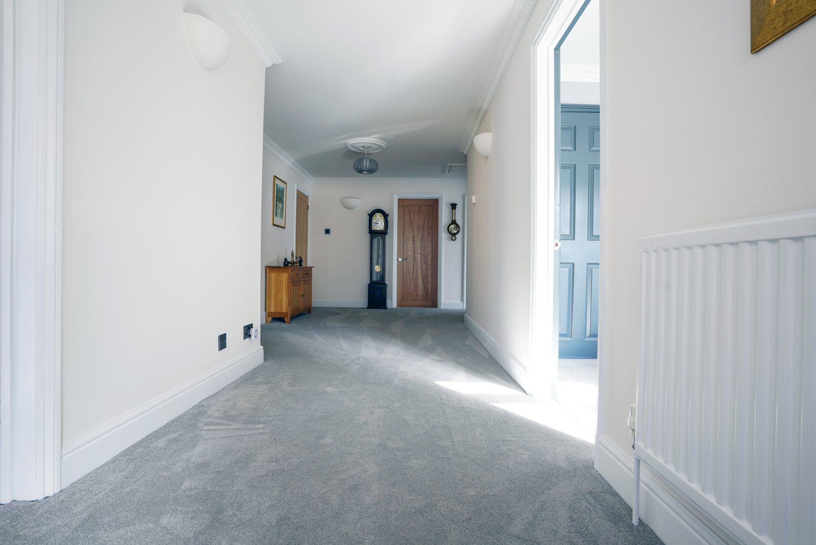 Entry to the property is via the new front door, sheltered by a large porch area and which opens into a very spacious central hallway enticing you inward. Seven premium new internal doors lead off the recently decorated hallway. The hallway has an additional utility cupboard and a separate airing cupboard featuring a new modern hot water storage system.