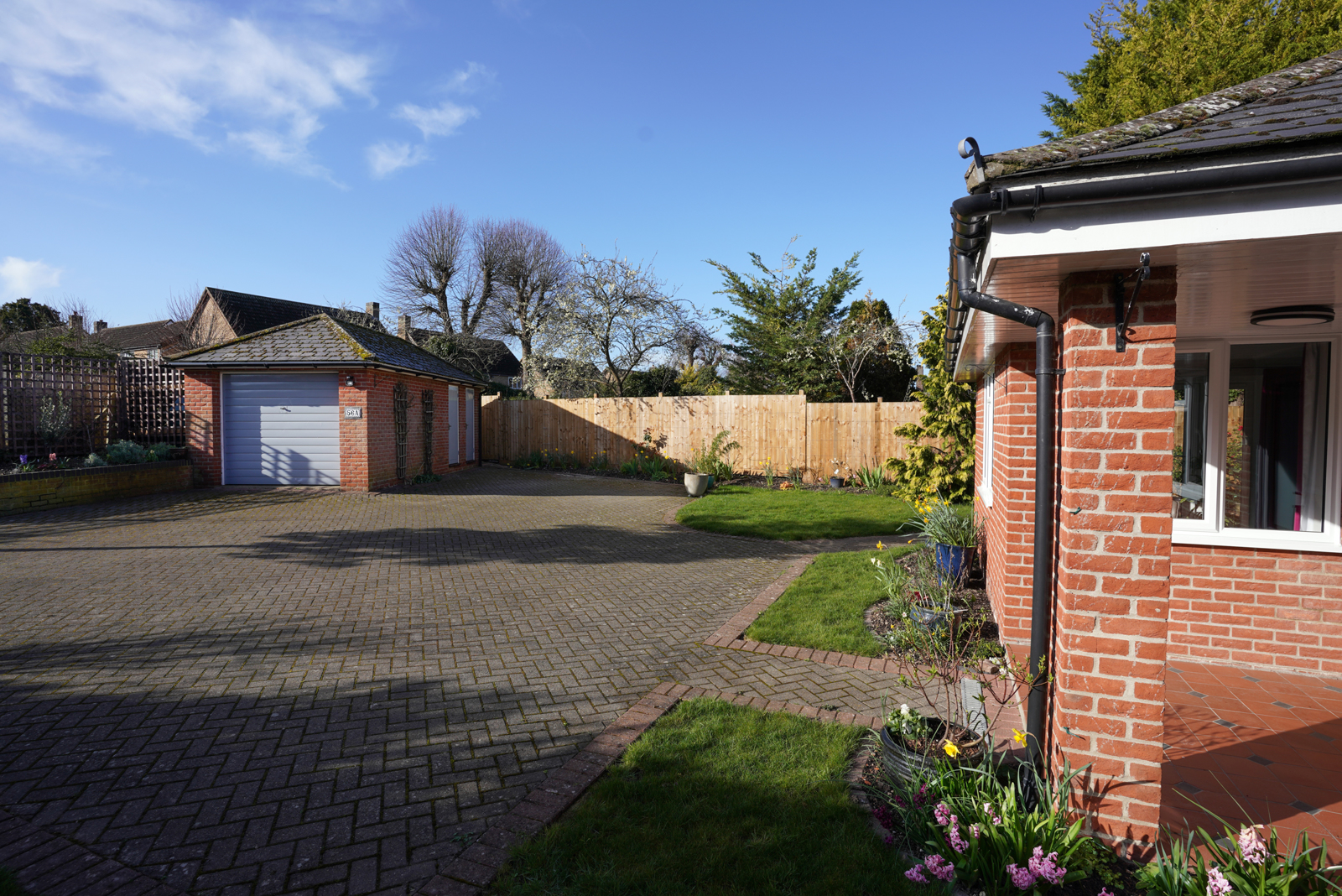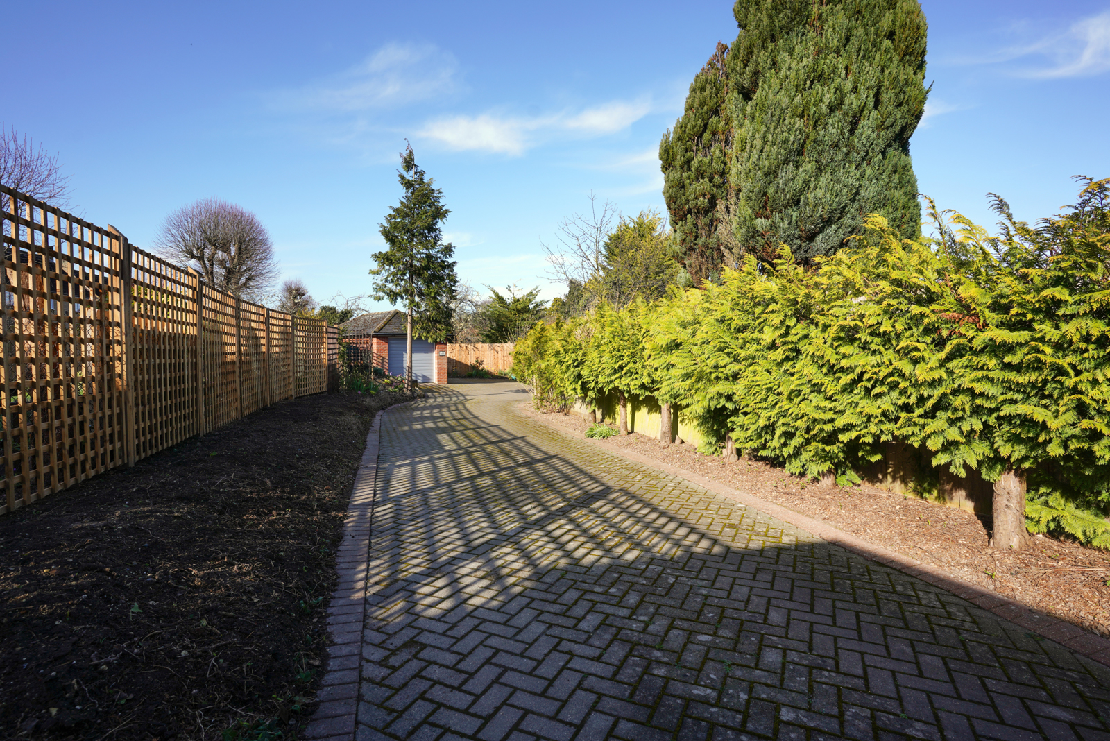 The property is accessed from Tannery Drift via a pleasant private lane leading to the driveway with parking for multiple vehicles.