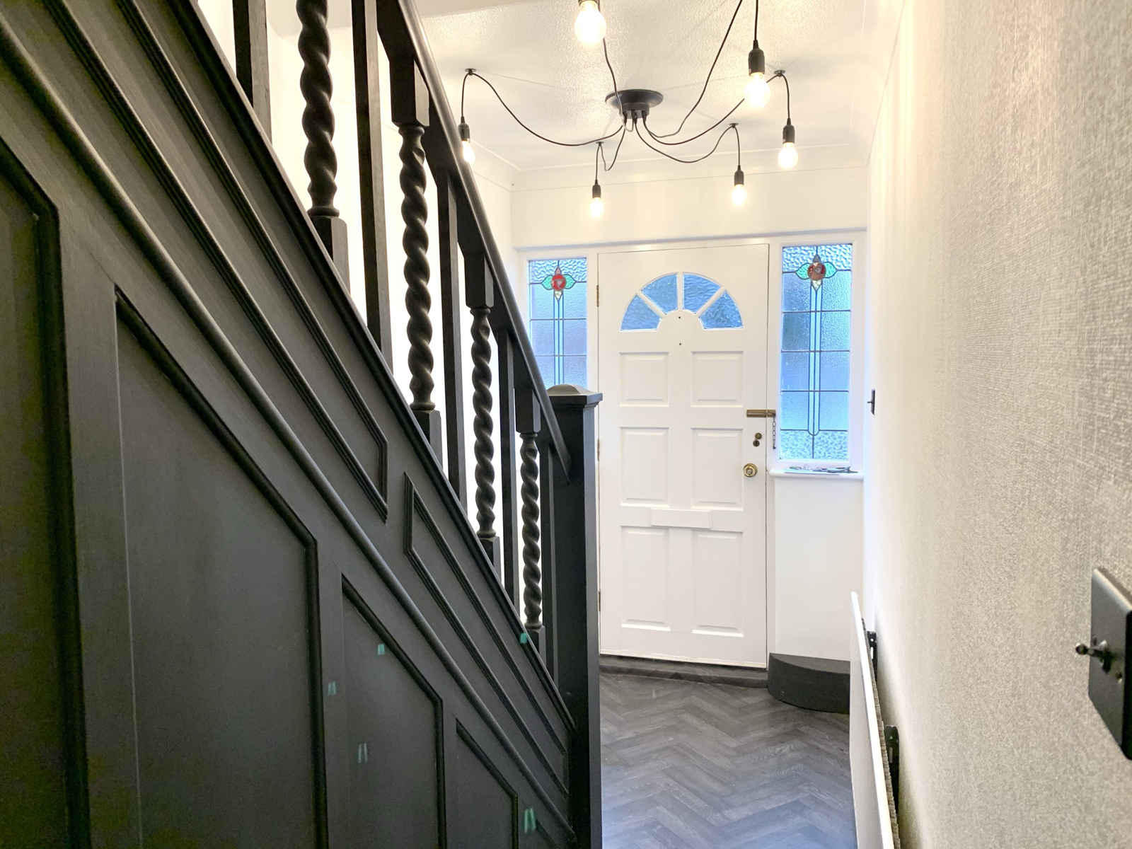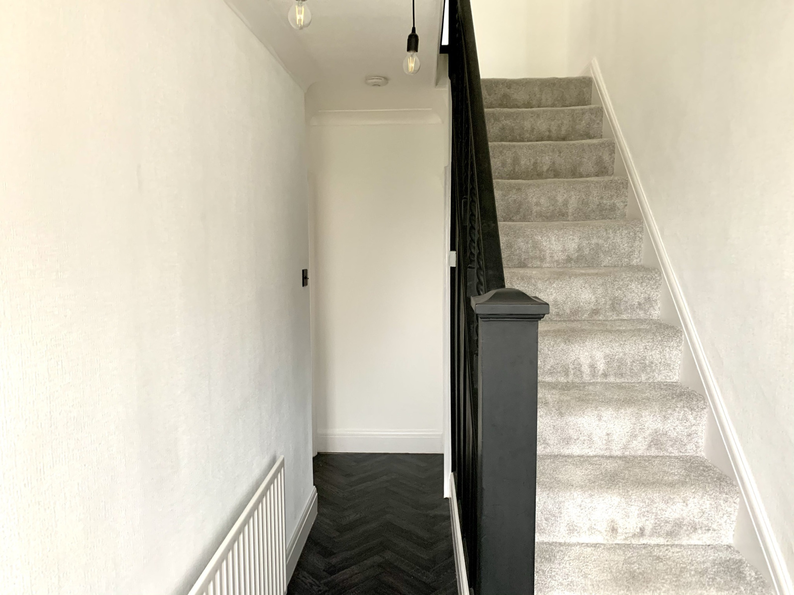 The upstairs has two good double bedrooms and a large single bedroom with a beautifully modern large bathroom.