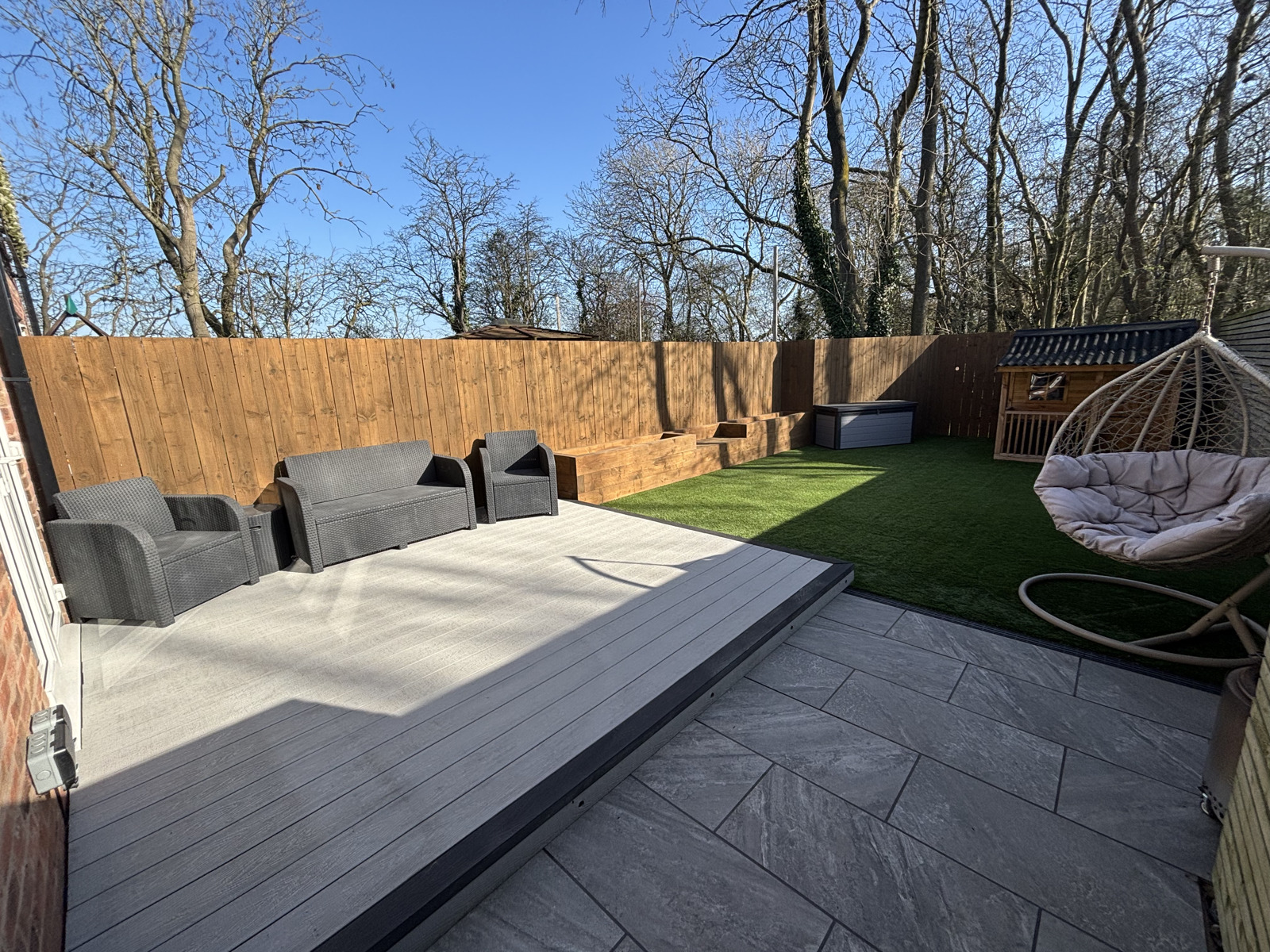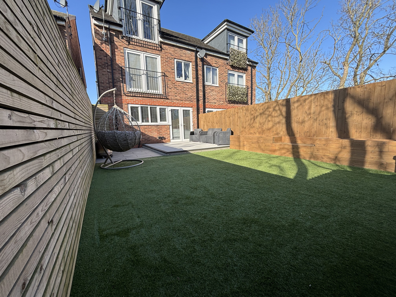 Externally, the property enjoys off-street parking to the front along with access to the integral garage. The rear garden has been thoughtfully landscaped to provide a modern and low-maintenance outdoor space, featuring a large composite decking area, porcelain paving, artificial lawn and a raised sleeper planter with built-in seating. The garden also benefits from outside sockets and both hot and cold outdoor taps.