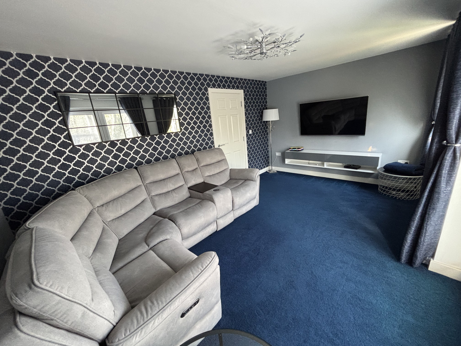 The ground floor briefly comprises a welcoming entrance hall with cloakroom/WC, under-stairs storage and access to the integral garage (utility area). To the rear of the property is a stylish open-plan kitchen and dining area fitted with a range of modern units, integrated oven, hob, extractor and fridge freezer. Patio doors open onto the rear garden, creating a bright and sociable space perfect for family living and entertaining.