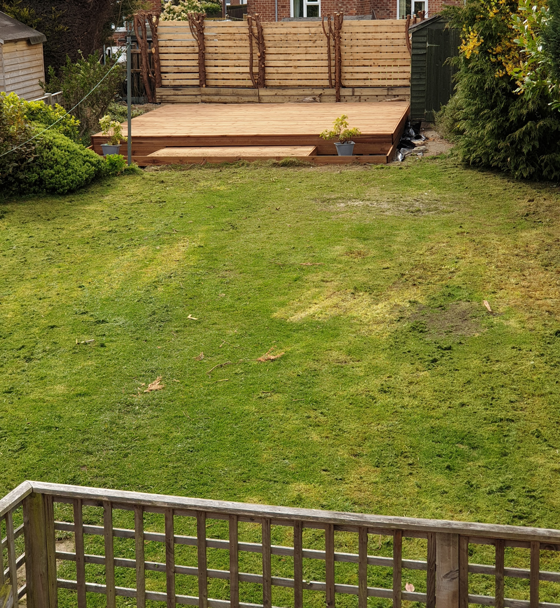 To the front a hard standing lawned area, with planted borders and driveway. To the rear a private garden with lawn, decked area plus a paved patio. Additional storage is provided by two sheds. There is an double weatherproof electrical socket, outside tap, and fenced boundaries.