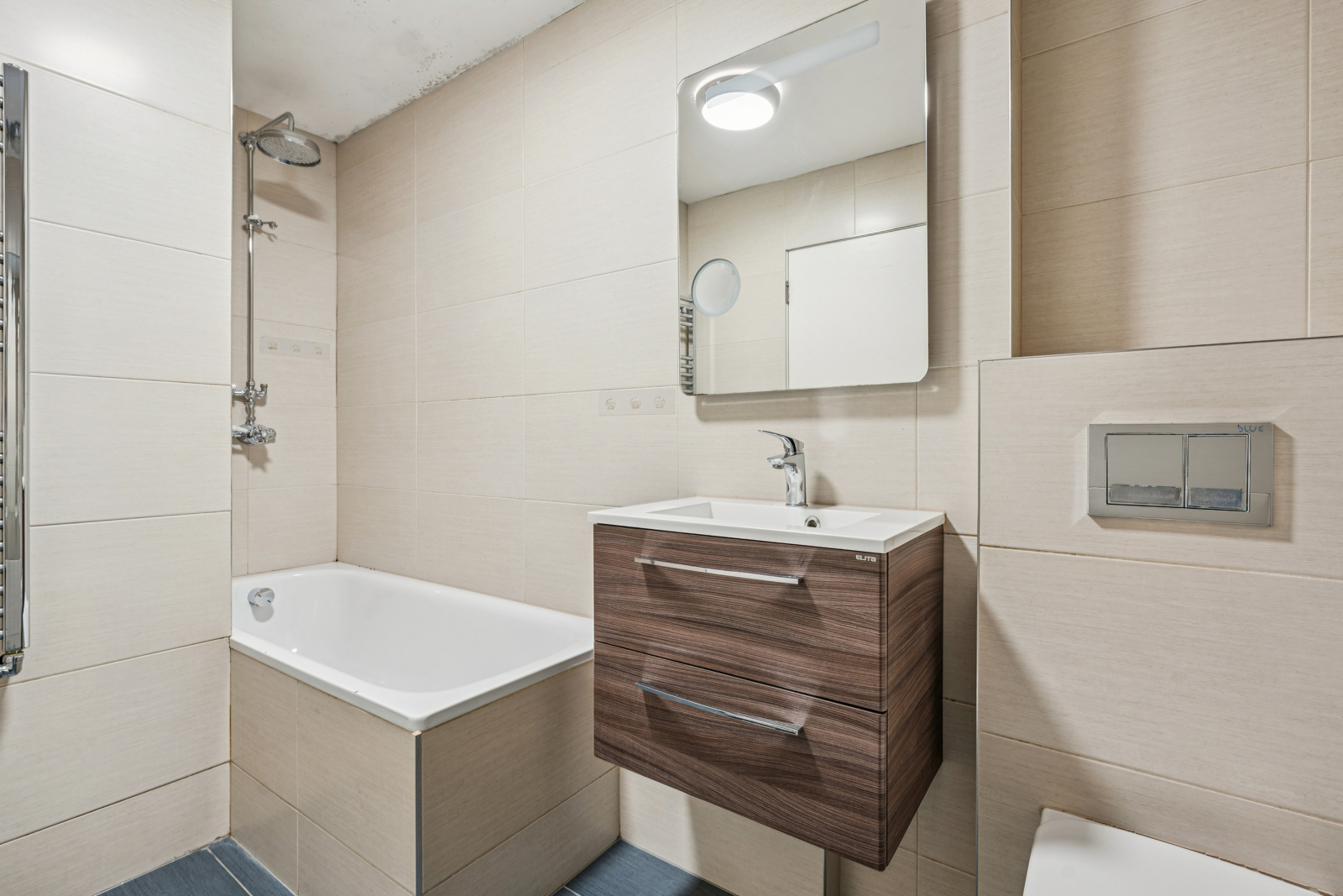 The bathroom is also very contemporary and benefits from a shower over the bath.