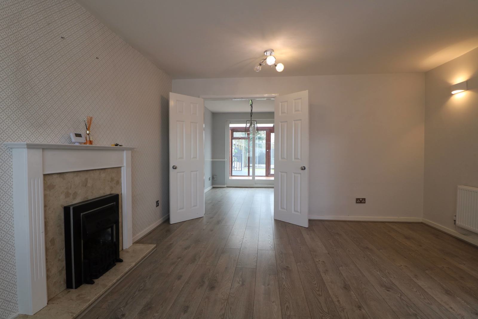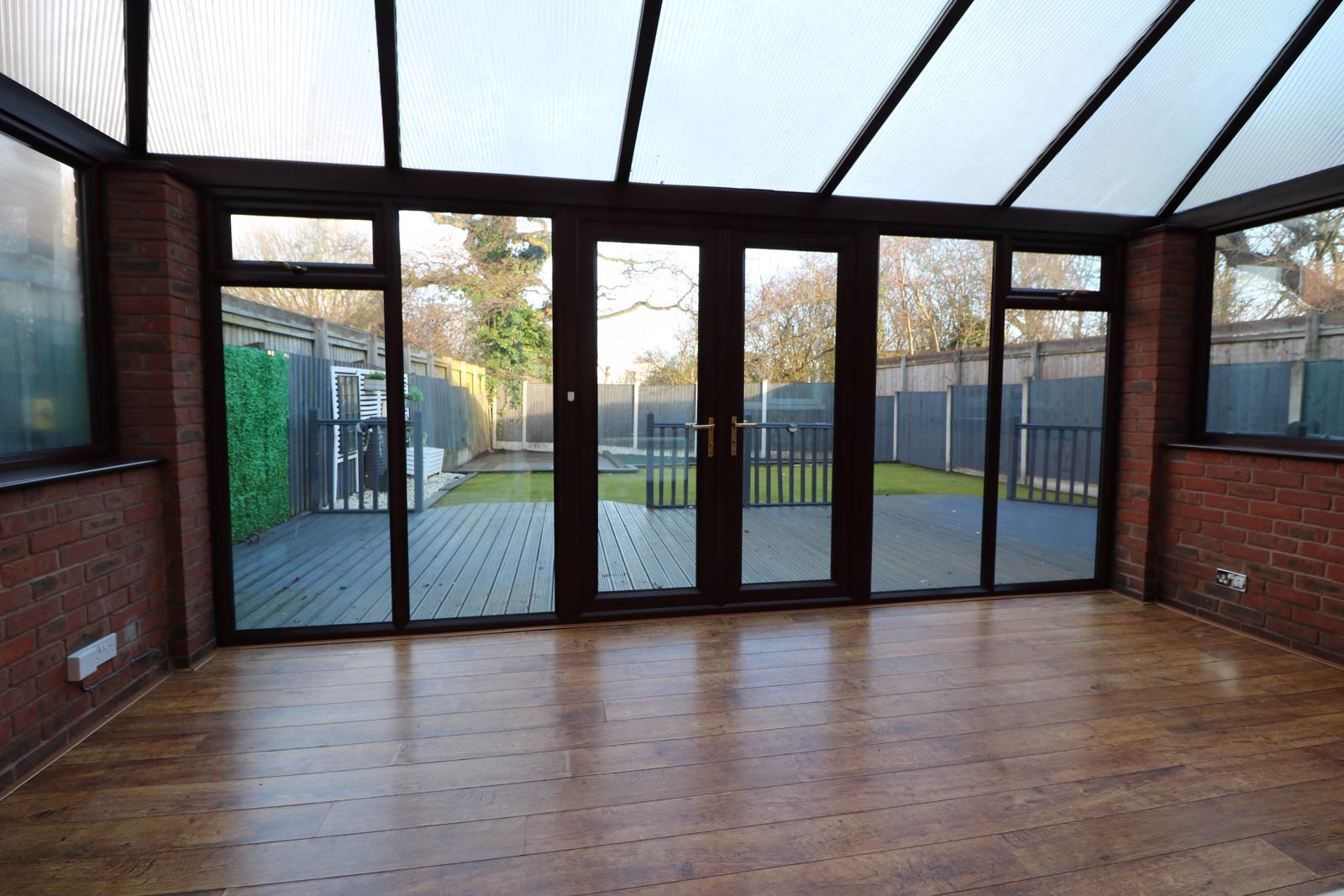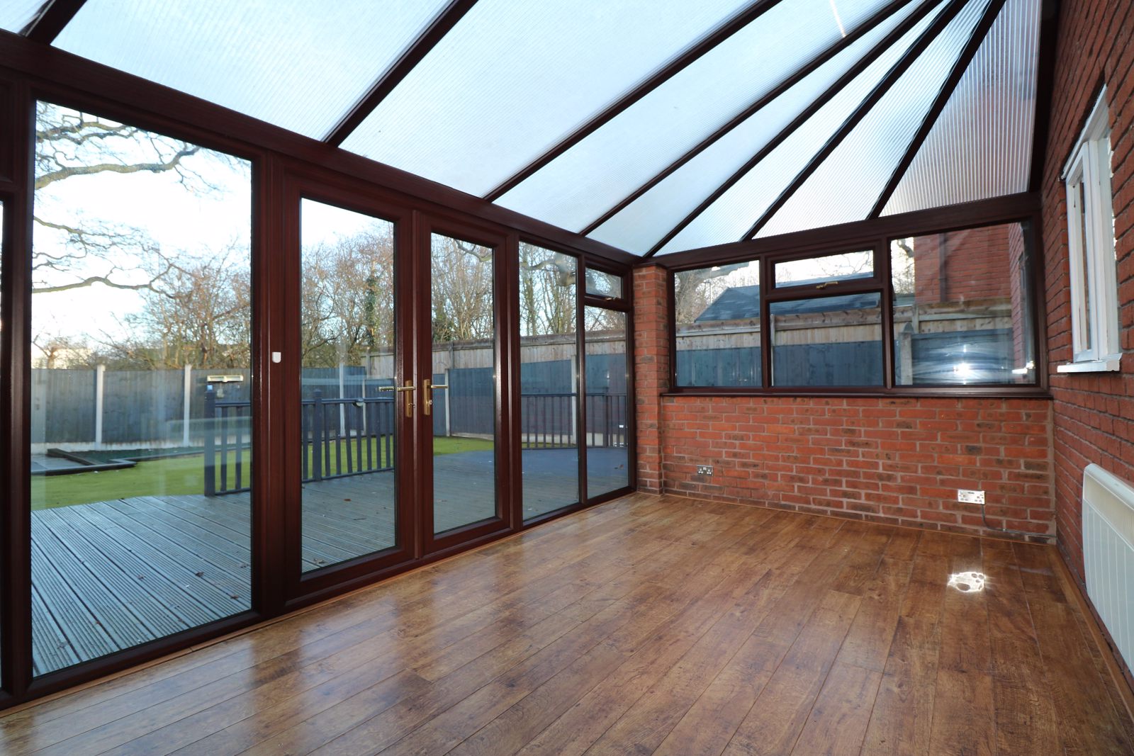 Sealed unit sliding patio doors in wooden frame opening into the conservatory. Open plan to