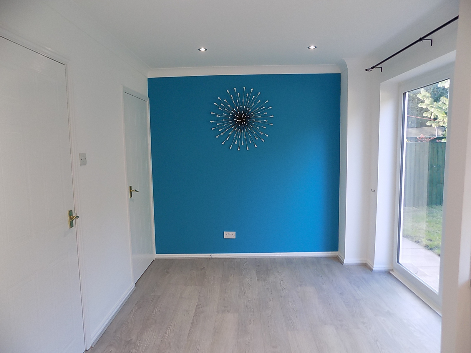 Outside, you’ll find a secure rear garden with a lawned area and a metal storage shed, plus a double driveway providing space for two cars.