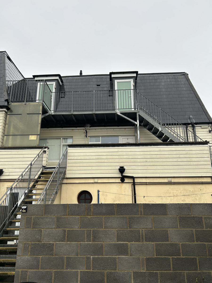 Two-bedroom 2nd floor flat. Fully carpeted. GCH. Double Glazing. Designated off-road car parking. Guarantor required and deposit required. Not suitable for young children due to the external staircase. Would suit a working or retired person/persons.