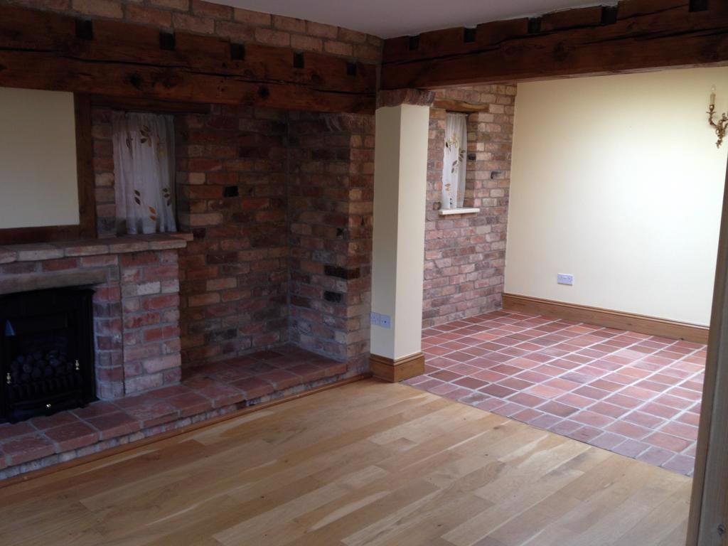 To the left you will be into the farmhouse style kitchen, with cupboard pantry and separate utility room. Heading through the kitchen will take you into the living room. A large open and bright space with gas fire place and oak floor. Beyond this is the open dining space, with atrium style roof flooding the area with light.