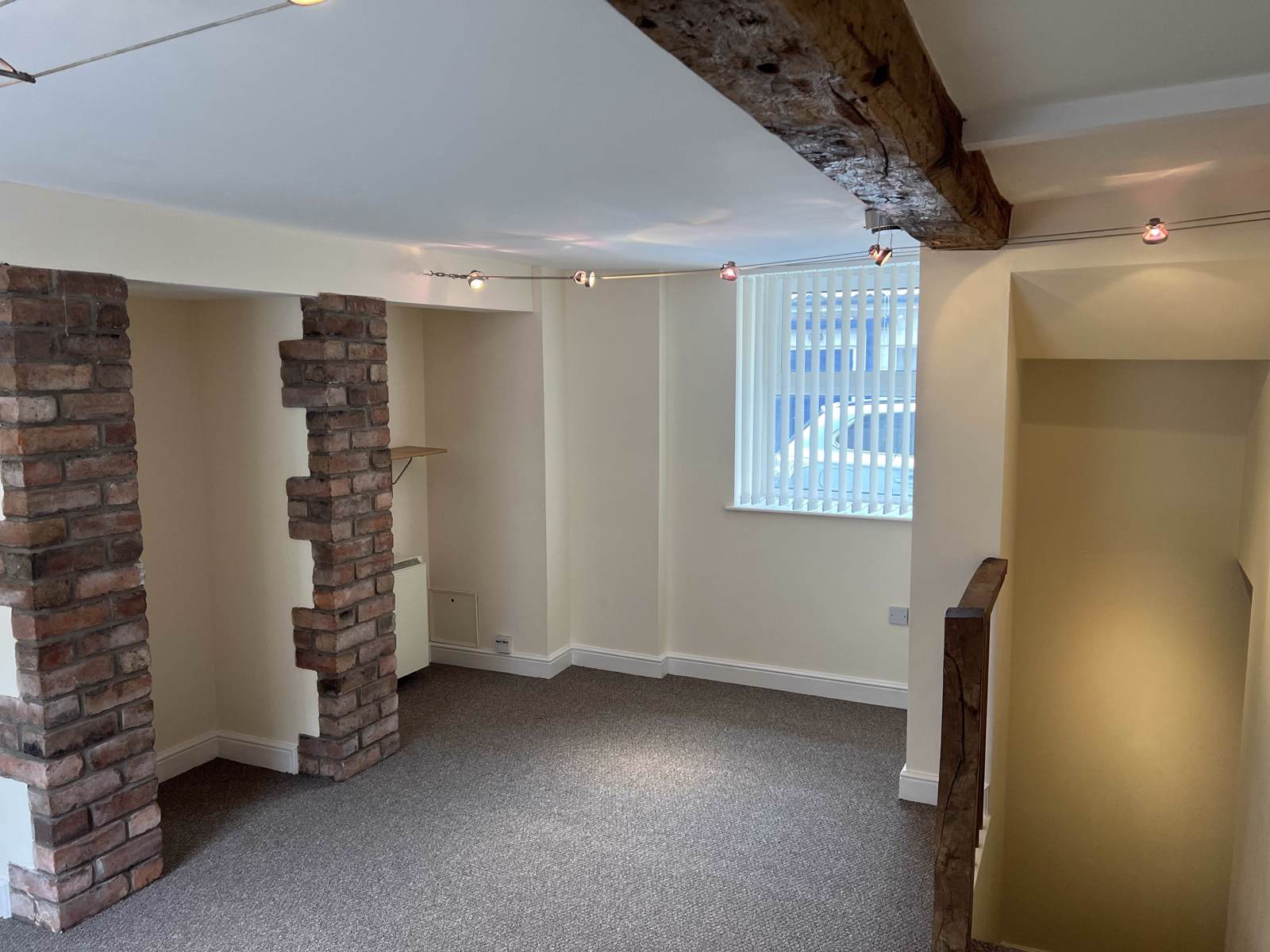 Charming office at 8 London Rd, Worcester WR5 2DL – 208 sq ft ground floor + 147 sq ft cellar storage & WC (total 355 sq ft). Exposed beams/brick, storage heaters, fresh decor/carpet. Prime spot near city centre, flexible lease terms, call to view.