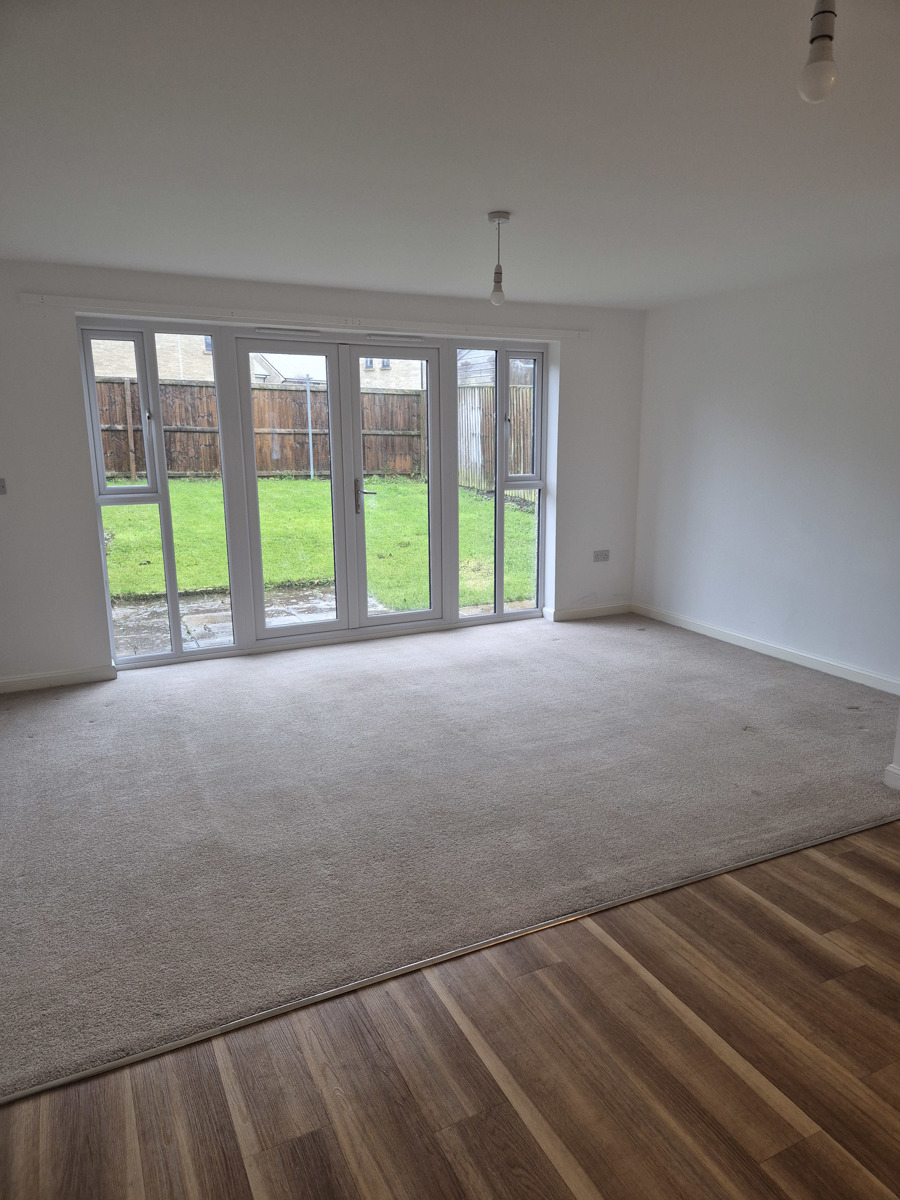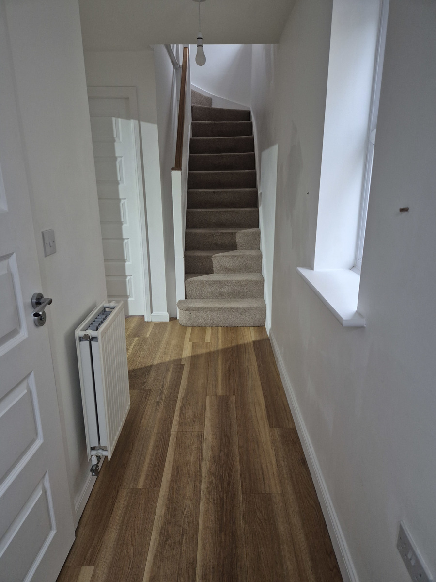 The composite front door leads in to the hallway. From here we access the downstair toilet, the modern fitted kitchen, and open plan living/dining area which has bi-fold doors leading to the garden, and under stair storage.