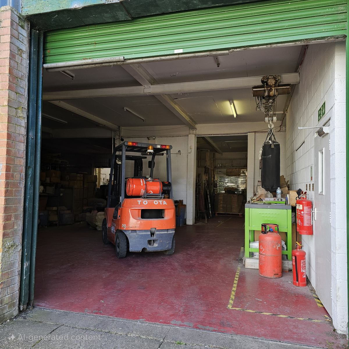 Warehouse / Factory Space: 1658sqft plus use of loading bay area (roller shutter opening) of 490sqft. Open-plan, high-ceiling (10.6ft), reinforced concrete flooring, 3-phase power.