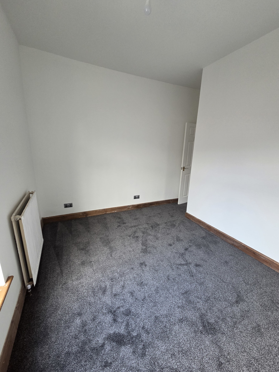 Upstairs, the property benefits from two well-proportioned bedrooms, both finished in neutral tones with new grey carpets. The modern bathroom features a walk-in shower, contemporary tiling, and white sanitary ware.