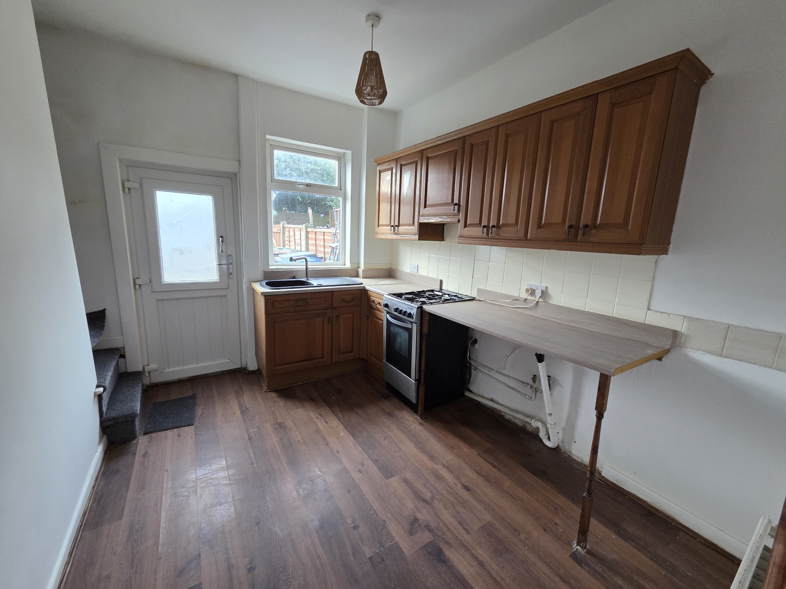 The Kitchen area offers access to understairs storage.