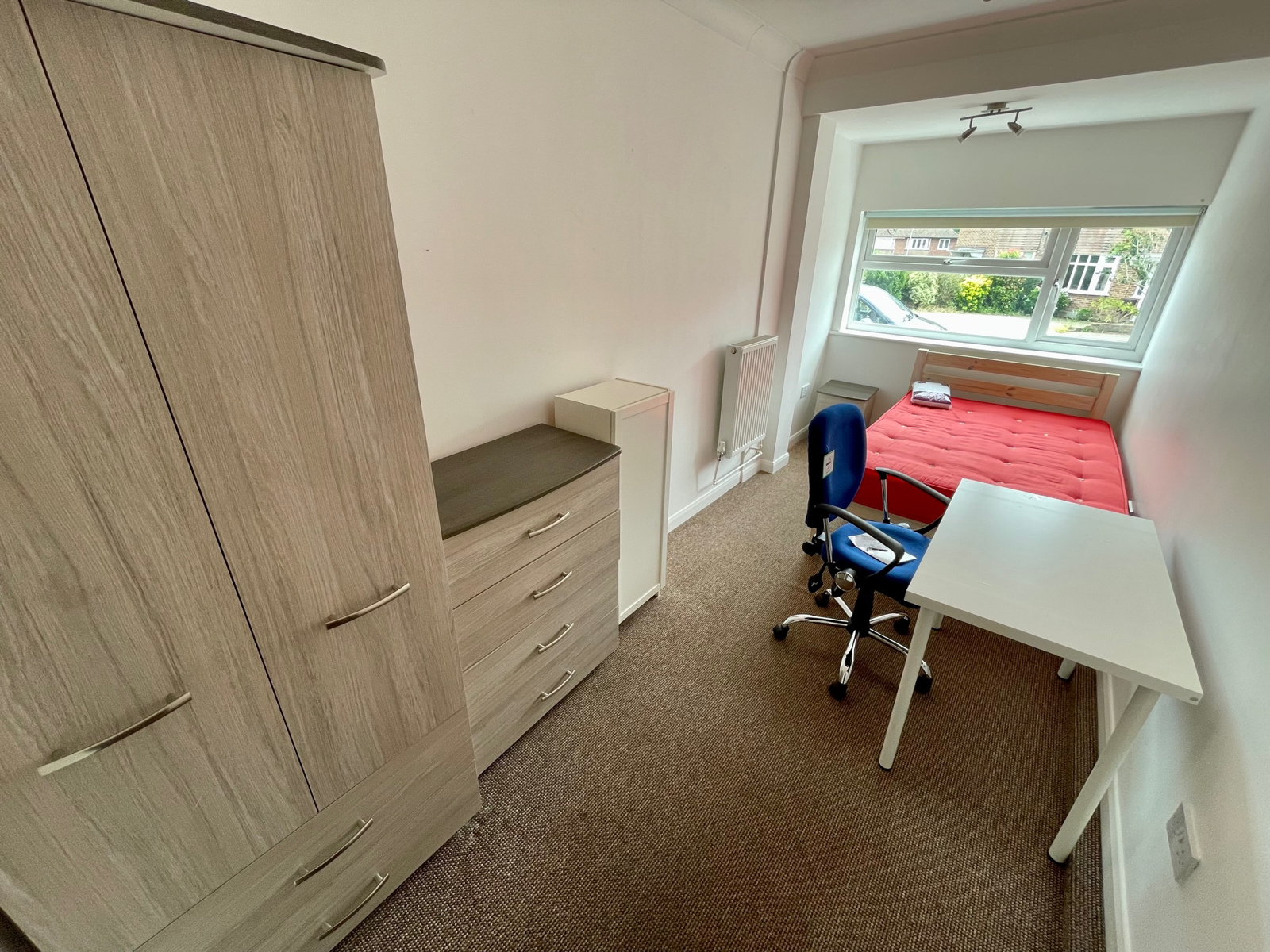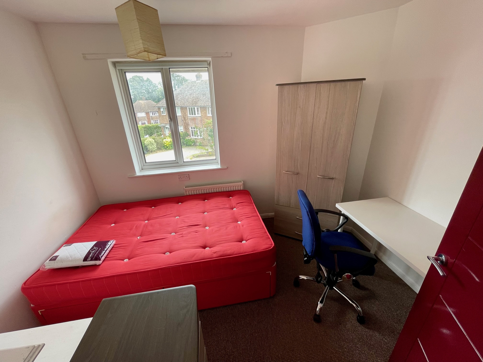 All the 6 bedrooms and doubles, and in each bedroom you'll find a double bed, wardrobe, desk with office style chair, chest of drawers, and bedside cabinet. All rooms are fitted with new blackout blinds.
