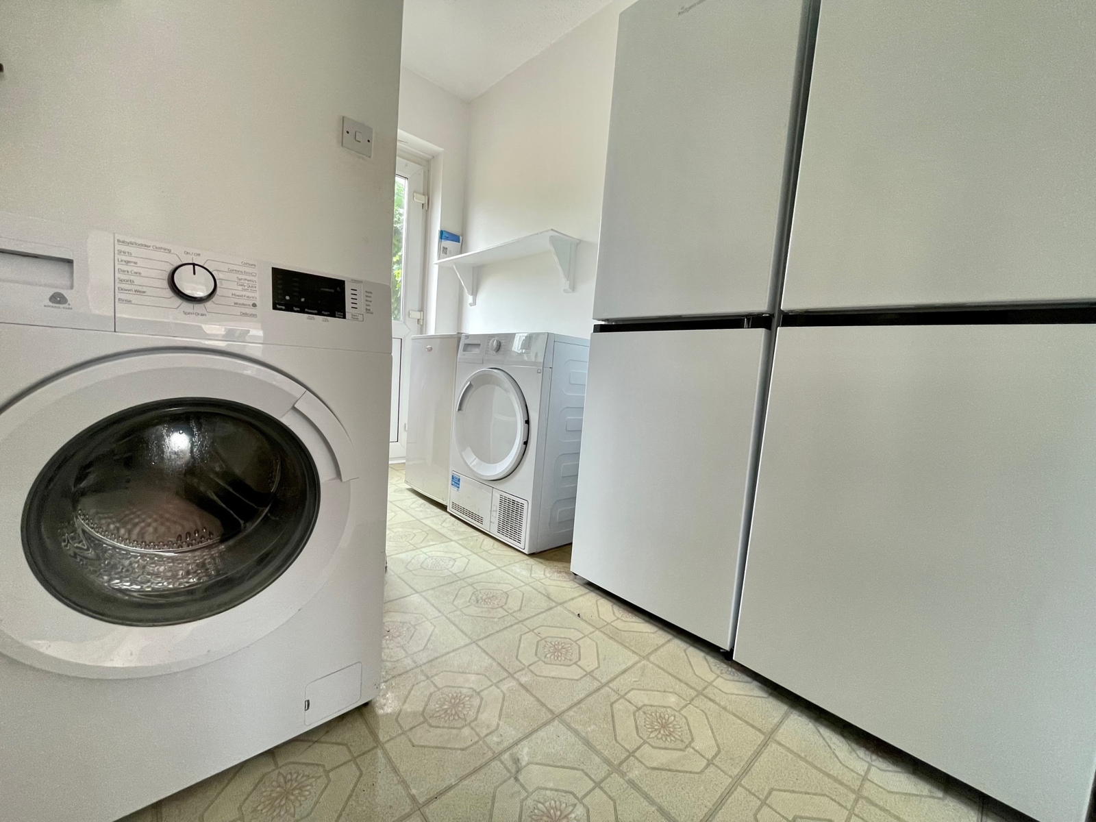 The house has a modern kitchen, with all appliances including a double oven, and there is a separate utility room with 2 fridge freezers and a washer and a dryer too.