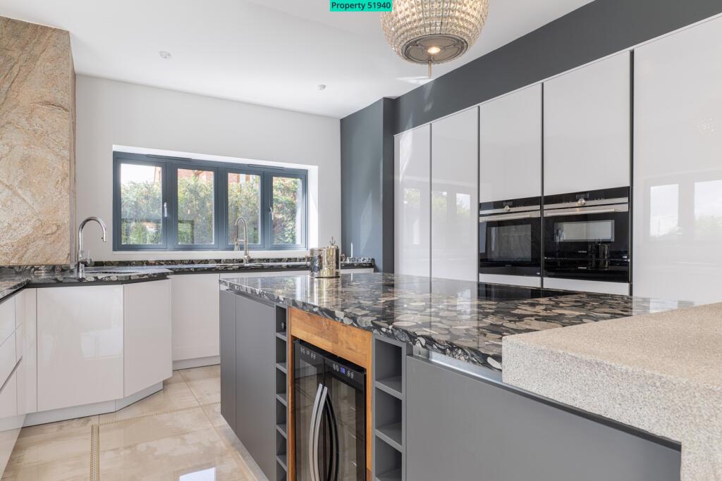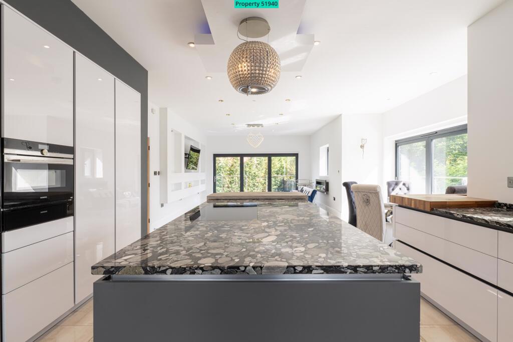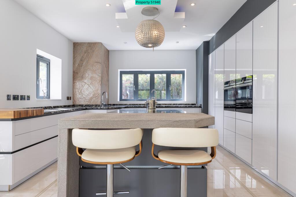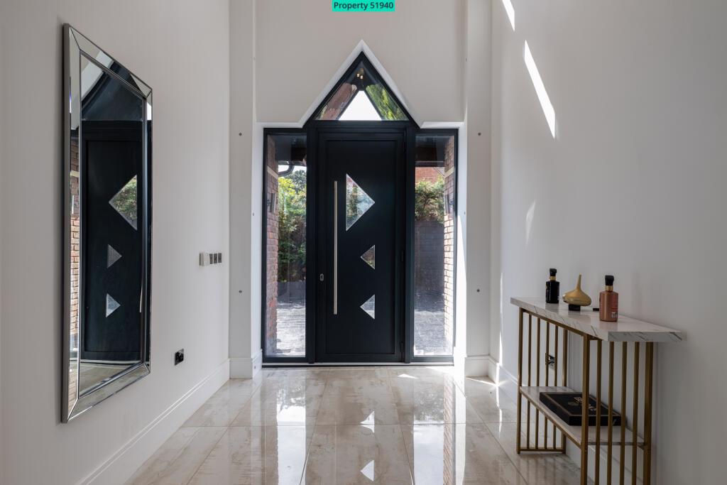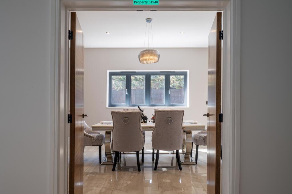 On entering the expansive Main Hallway, prepare to be impressed by the double height ceiling void, Galleried Landing with glass balustrade and solid walnut and glass cantilevered staircase . The space is completed by large format porcelain tiles, feature chandelier and full height rear window.