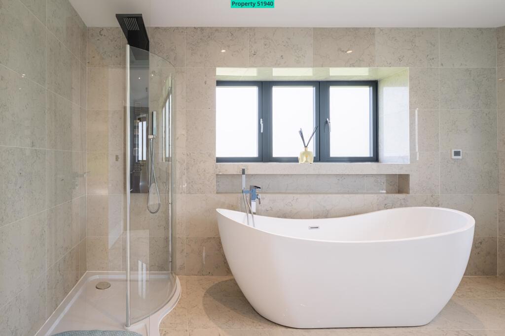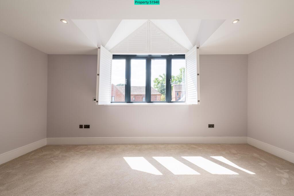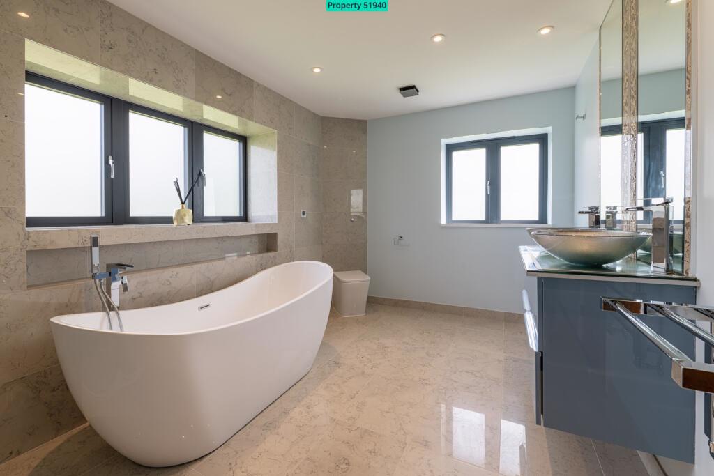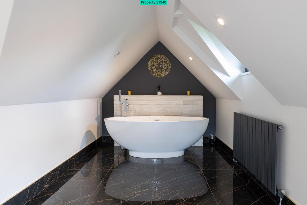 Bedroom 5 offers a unique space with 2 glazed gable windows and a 'wow factor' freestanding bath sitting on a tiled platform, providing lots of drama !