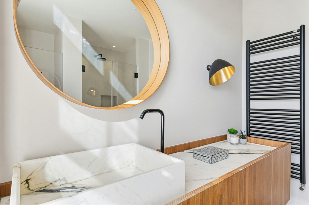 The versatile layout provides generous living and entertaining space, with the standout feature being the impressive artist’s studio, flooded with natural light and ideal for creative work, a home office, or an additional living area. Each room has been thoughtfully designed, with high-quality materials, elegant finishes and meticulous attention to detail.