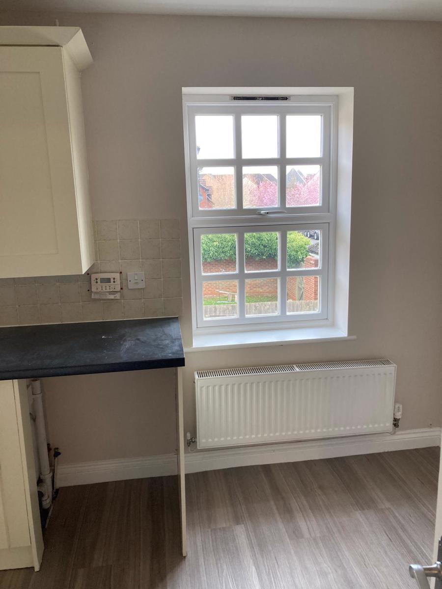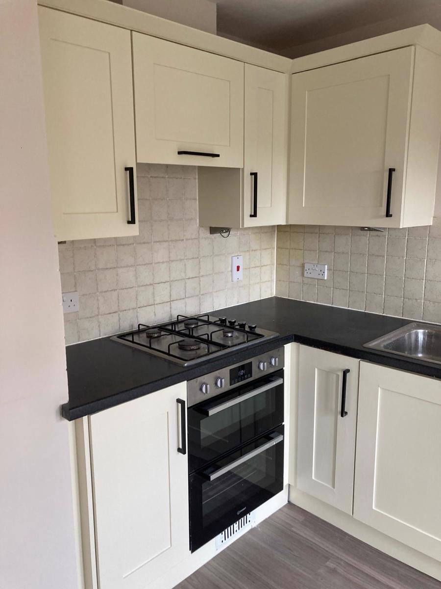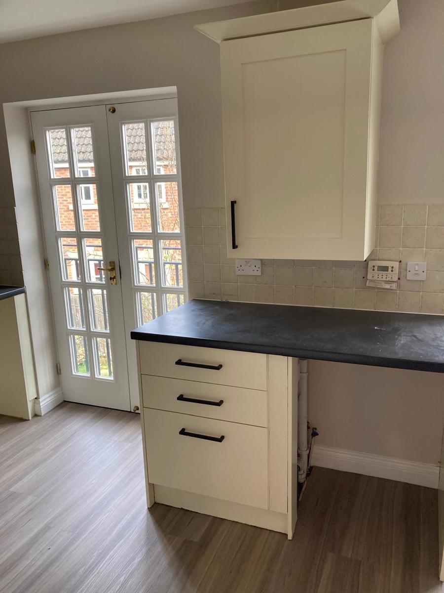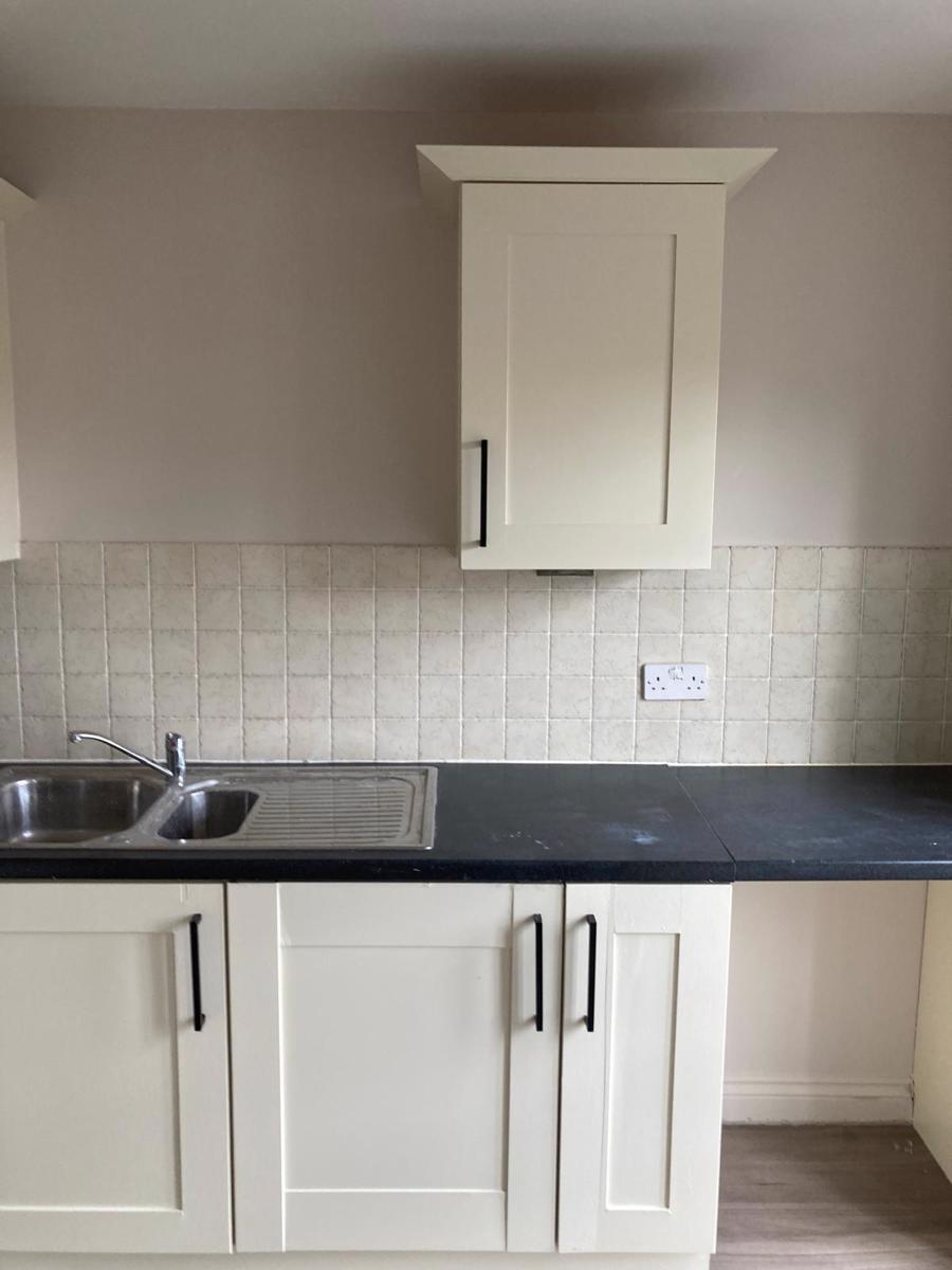 Kitchen with a range of fitted cupboards, please note NO white goods are included